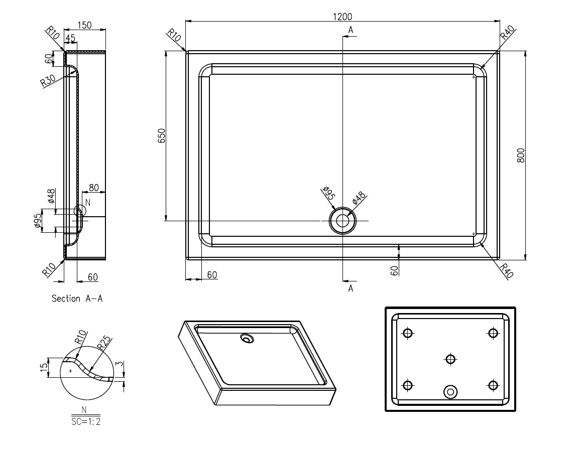 Характеристики Поддон Azario (P1812 R/L)