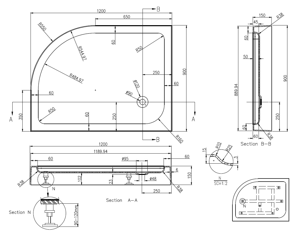 Акриловый поддон Azario 120х90 см P2912 R