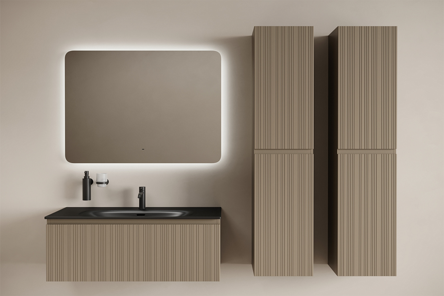 Тумбы с раковинами разных размеров, подвесные шкафы, пеналы, компактные или вместительные модули, универсальные цветовые решения, органичная сочетаемость с сантехникой.