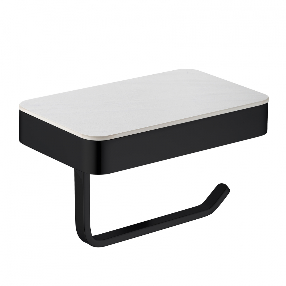 Держатель для туалетной бумаги ABBER Westen AA1730B с полкой для телефона, материал нержавеющая сталь/керамика, цвет чёрный матовый.