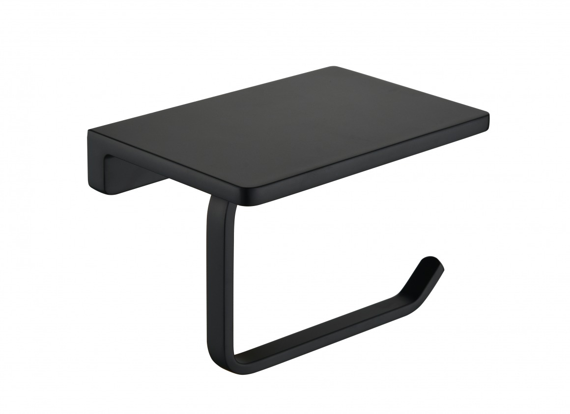 Держатель для туалетной бумаги Grocenberg AC0027BL с полкой для телефона, материал латунь, цвет чёрный матовый.