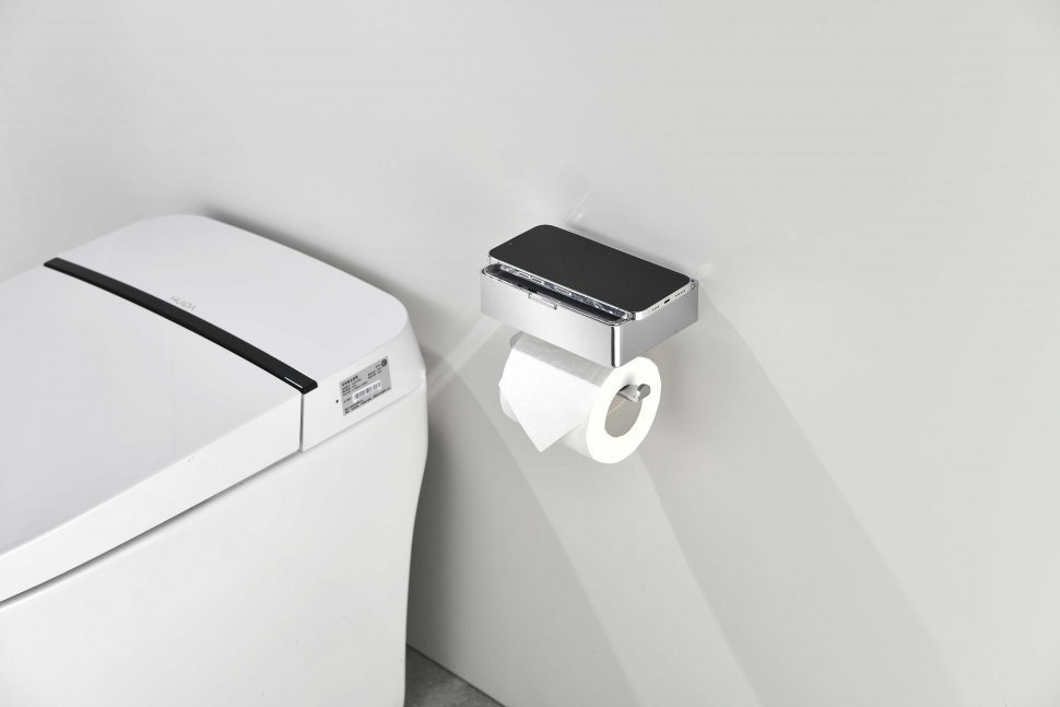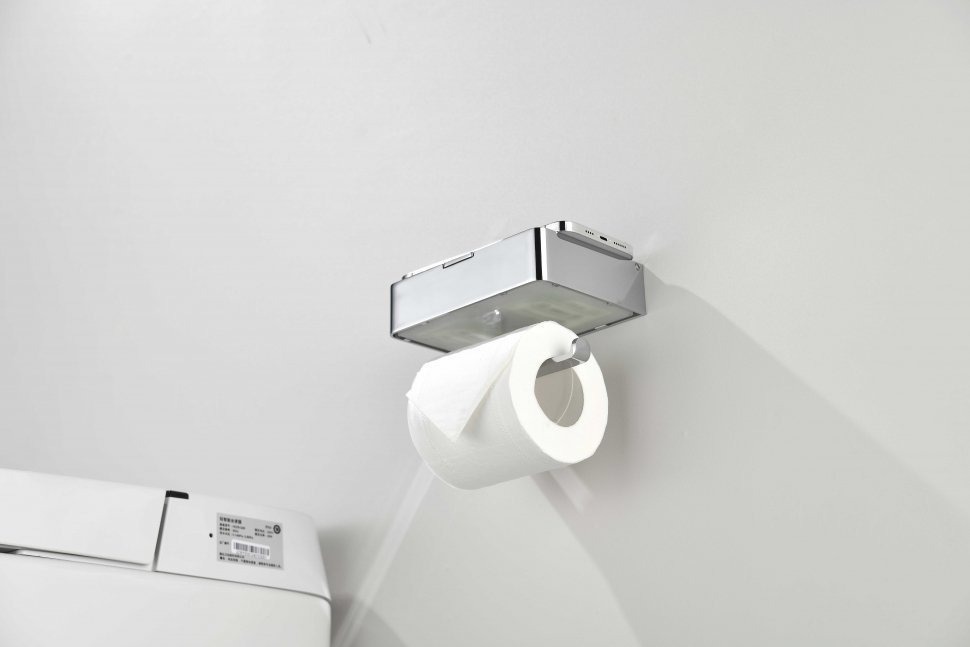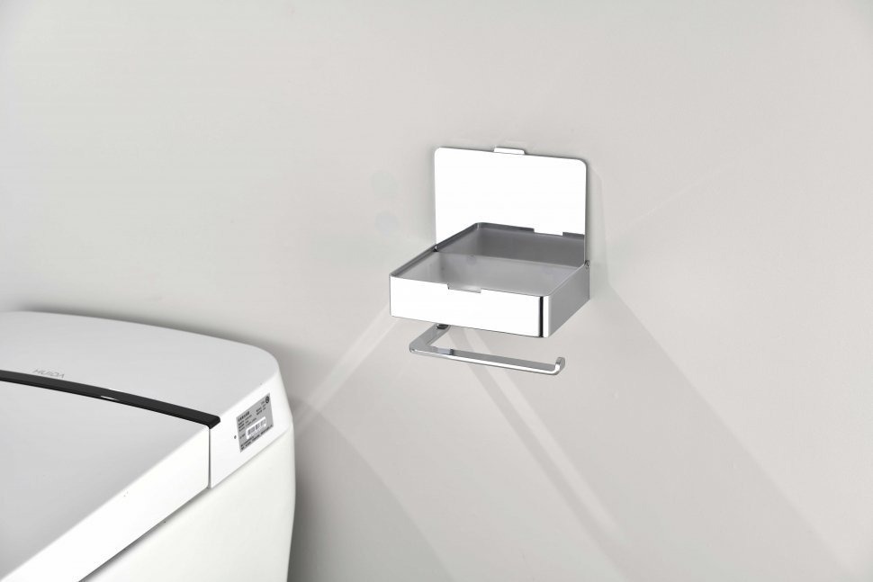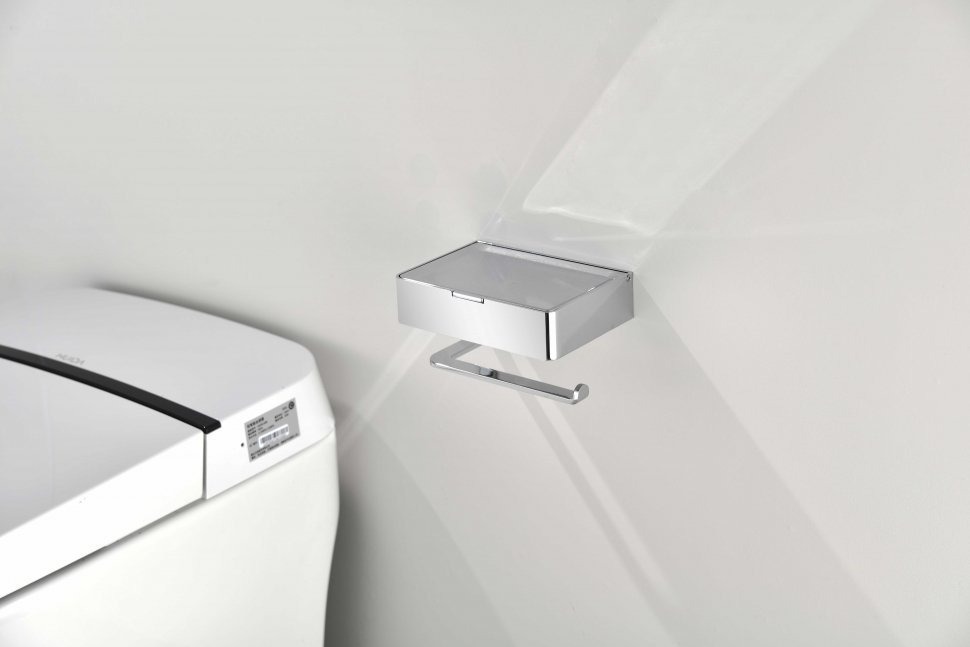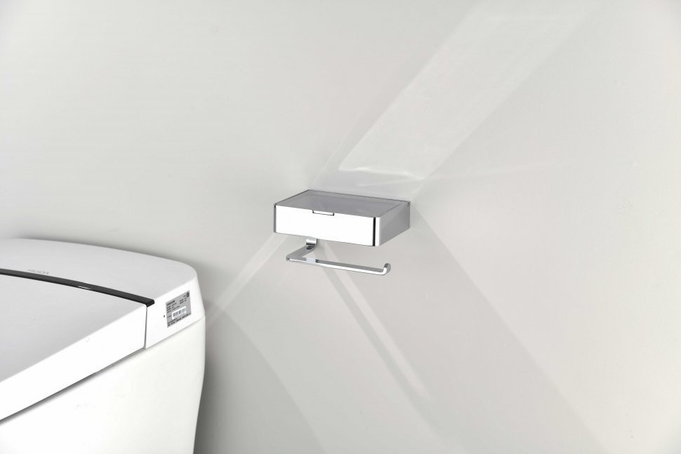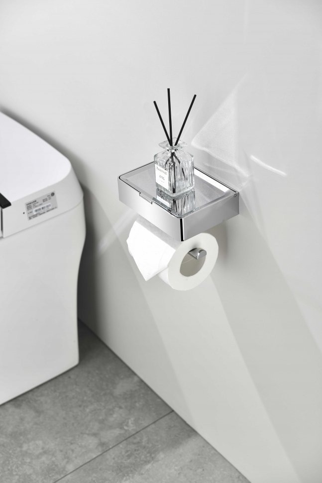 Держатель для туалетной бумаги Grocenberg AC0050CR с полкой для телефона, материал латунь, цвет хром.