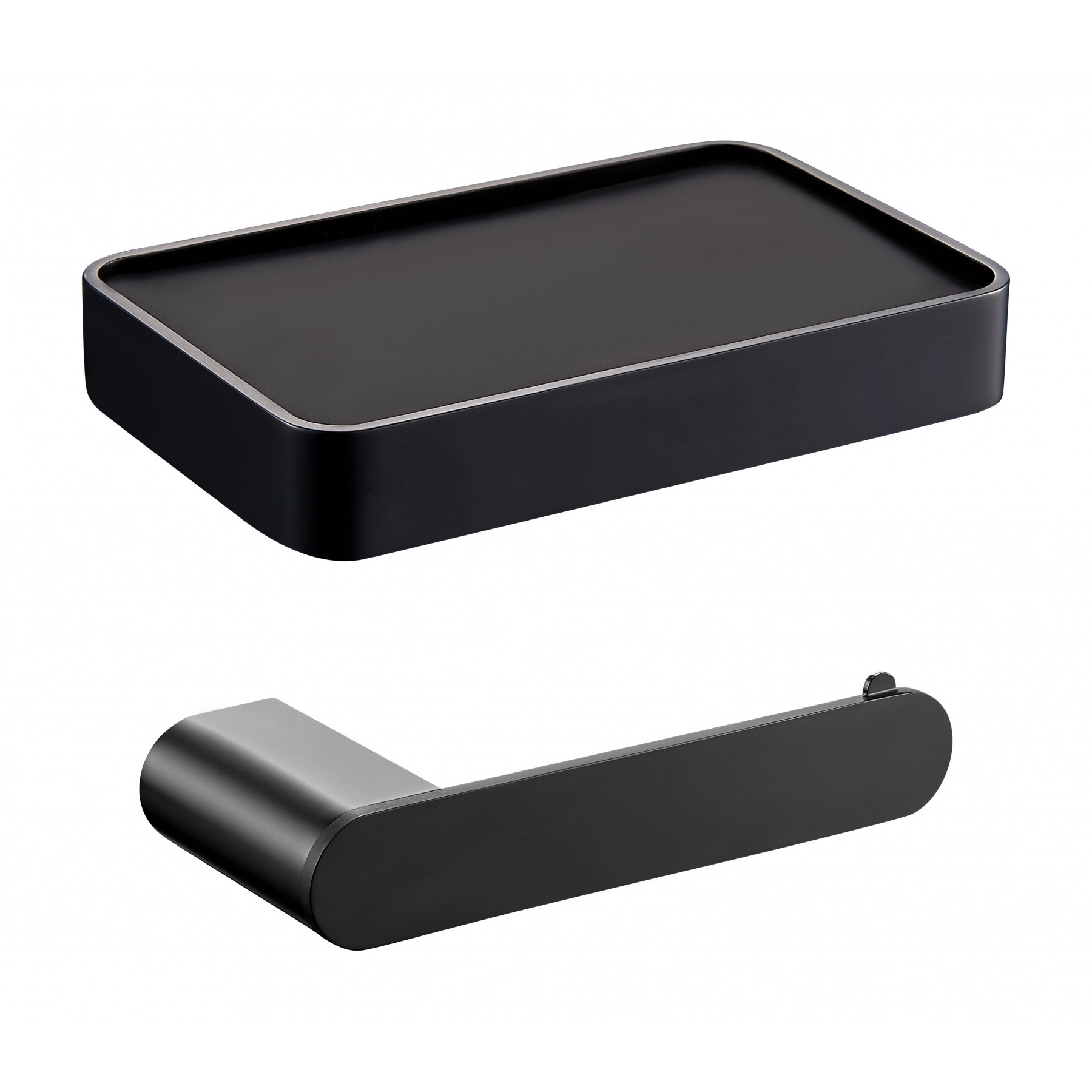 Держатель для туалетной бумаги Wonzon & Woghand Carbon WW-7726 с полкой для телефона, материал латунь, цвет чёрный матовый.
