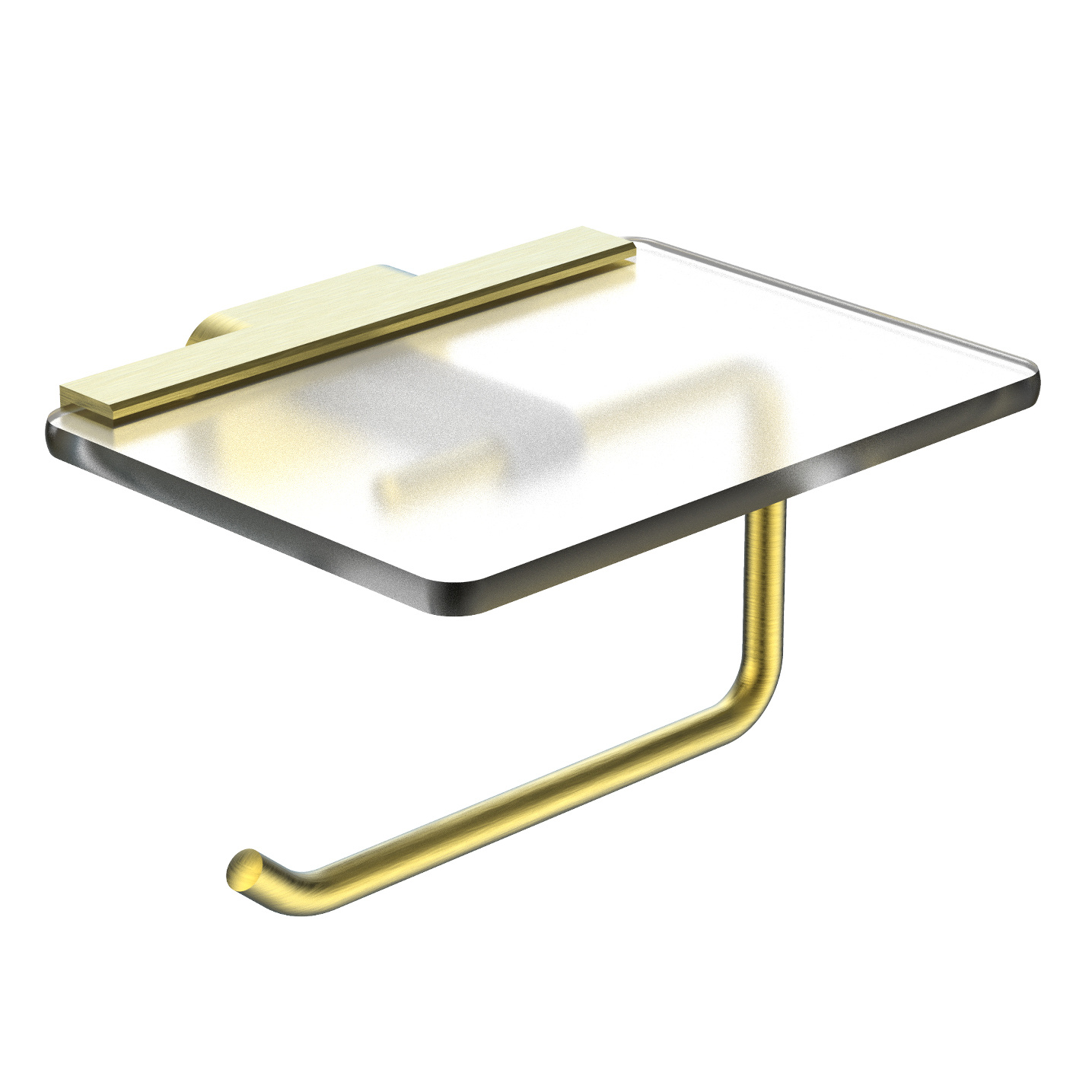 Держатель для туалетной бумаги Wonzon & Woghand Graffity WW-9326-BG с полкой для телефона, материал латунь/стекло, цвет золото брашированное.