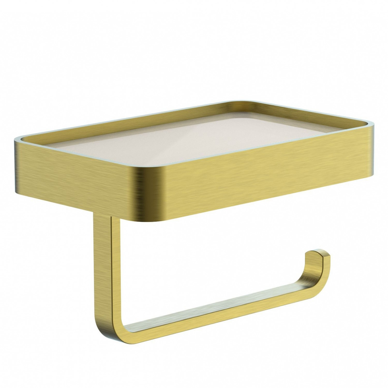 Держатель для туалетной бумаги Wonzon & Woghand Lotte WW-8336-BG с полкой для телефона, материал латунь, цвет золото брашированное.