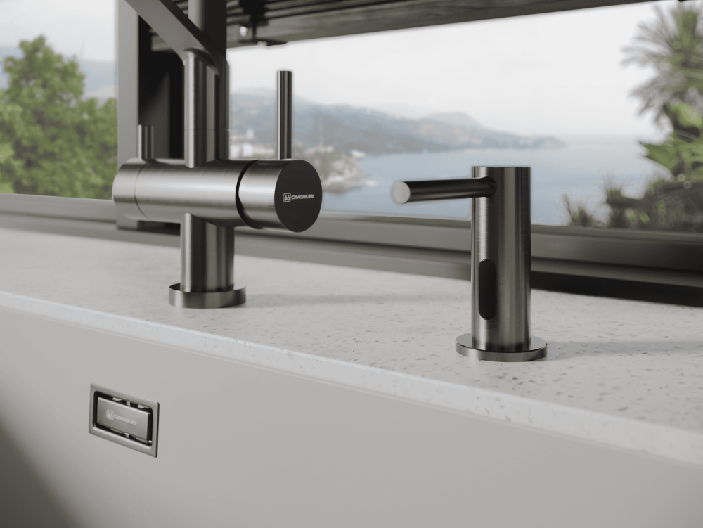 Дозатор для моющего средства сенсорный OM-09 sensor gm 4995106, цвет вороненая сталь.
