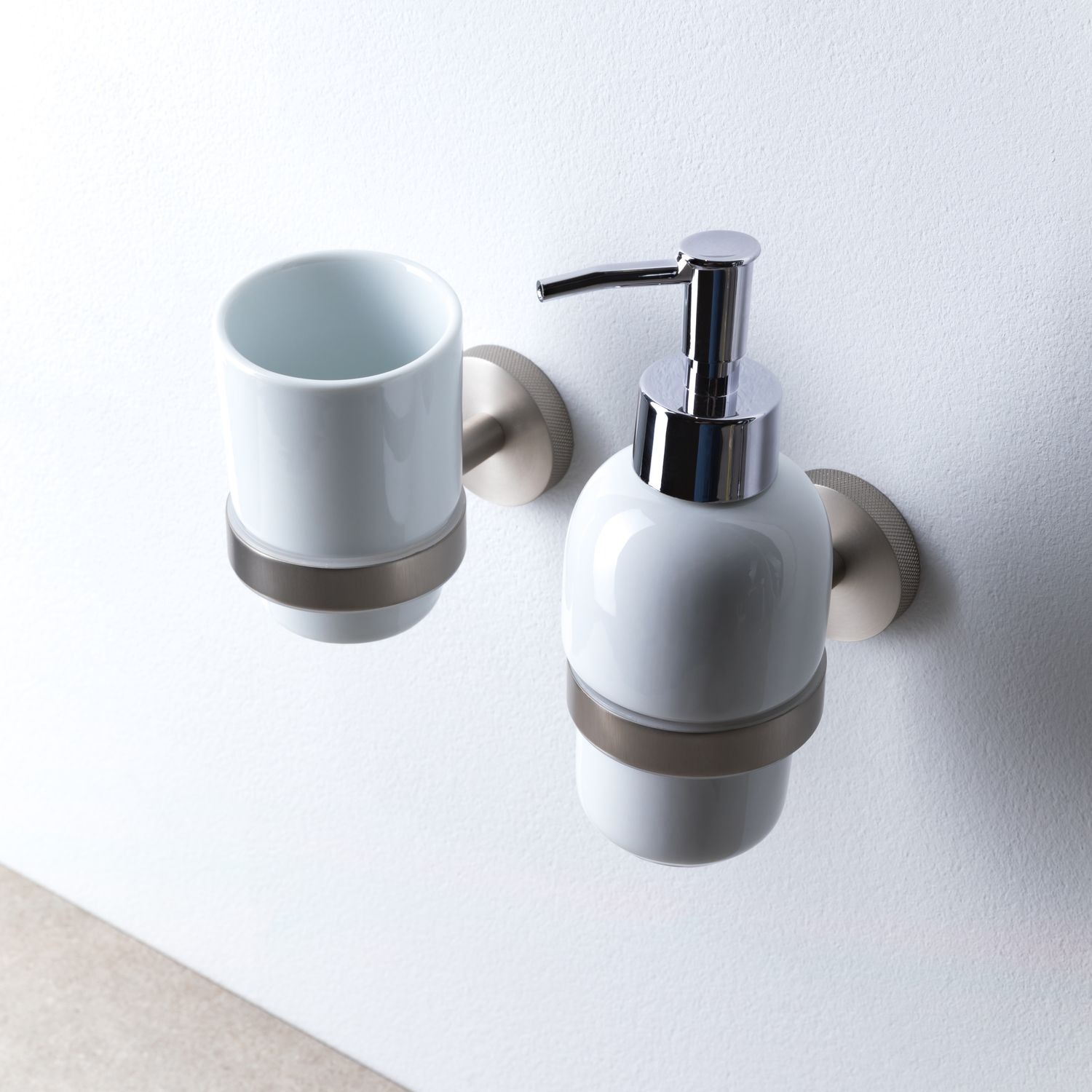 Дозатор для жидкого мыла Allen Brau Priority 6.31006-BN, материал латунь/керамика, цвет белый/никель брашированный.