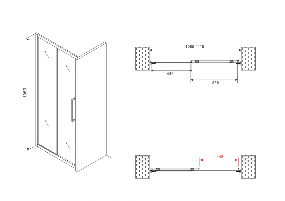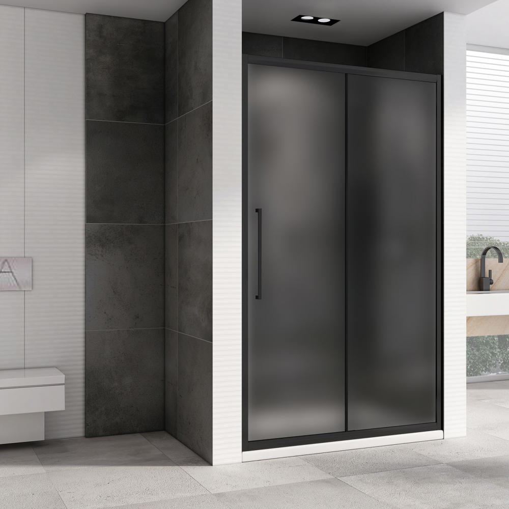 Душевая дверь Abber Schwarzer Diamant, размер 1100х1950 мм, профиль чёрный, стекло матовое 6 мм. Габариты регулировки (1085-1115)х1950 мм, вход 448 мм. Душевой поддон приобретается отдельно.
