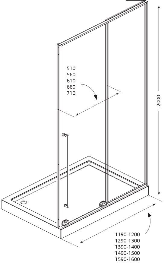 Душевая дверь Allen Brau Fantasy 3.11008.31 1400х2000 мм, стекло - прозрачное 8 мм, профиль - чёрный матовый, ширина входа - 610 мм, габариты с диапазоном регулировок: 1390-1400 мм, поддон приобретается отдельно.