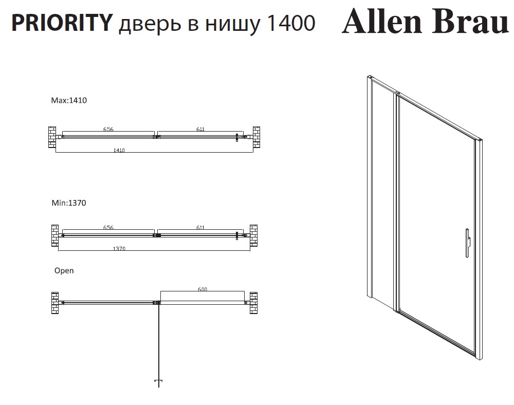 - Душевая дверь Allen Brau Priority 140 серебро браш 3.31034.00 входит в модульную программу, которая позволяет создать душевую зону на свой вкус и в соответствии с требуемыми размерами.
