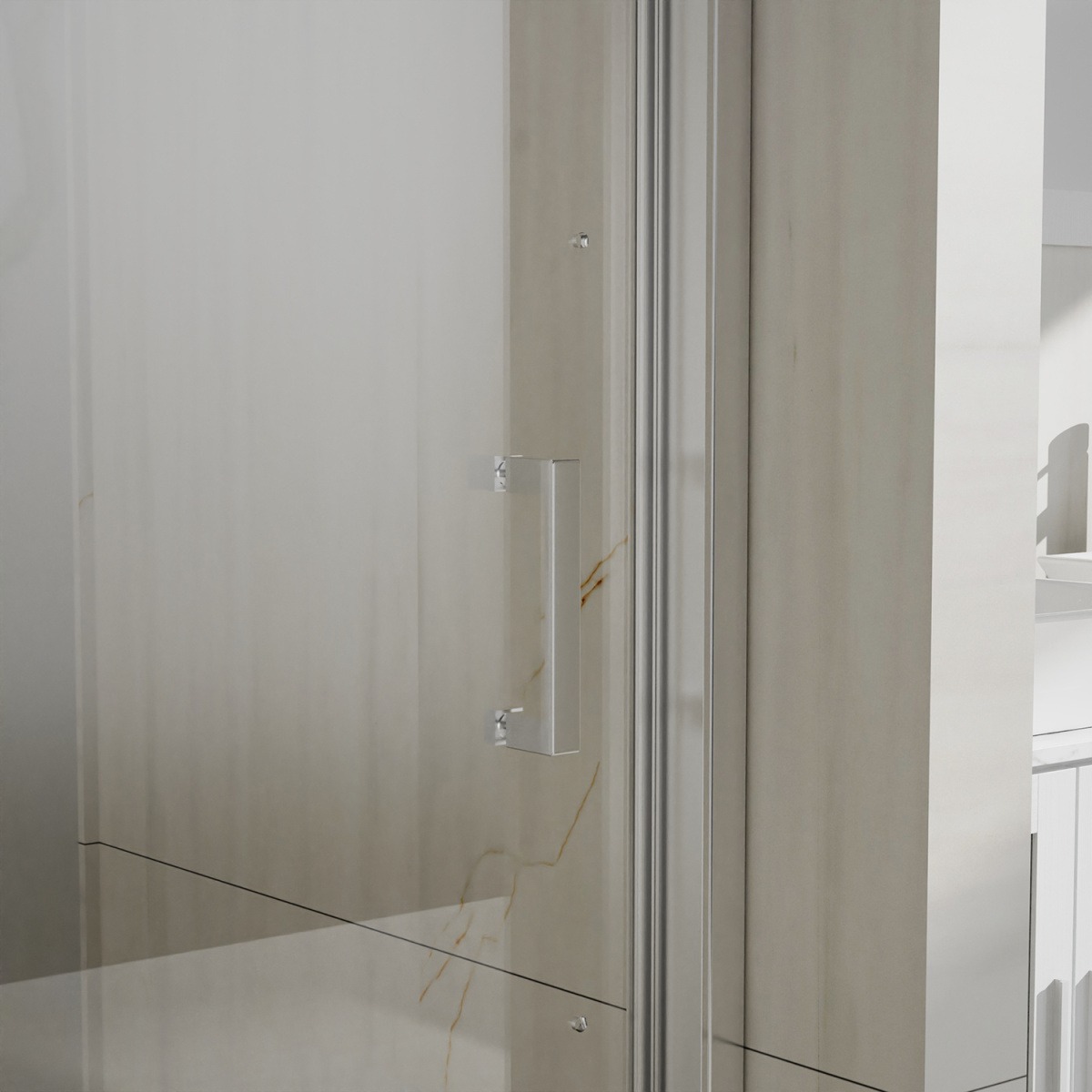 - Усиленная дверь в нишу, с одной раздвижной дверью, на усиленных дизайнерских роликах с нержавеющими подшипниками.