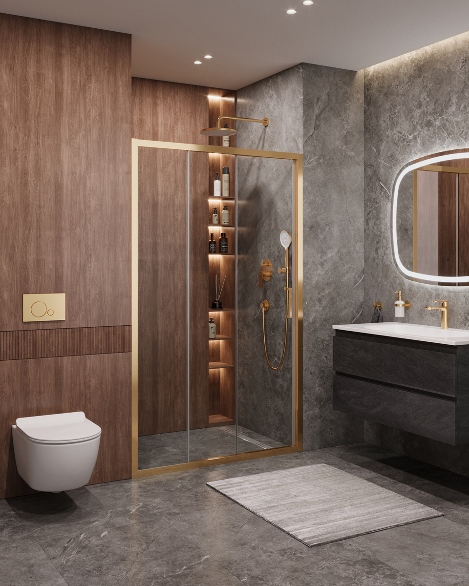 Душевая дверь Cezares 120 см MOLVENO-BF-3-120-C-BORO-IV, брашированное золото/прозрачное