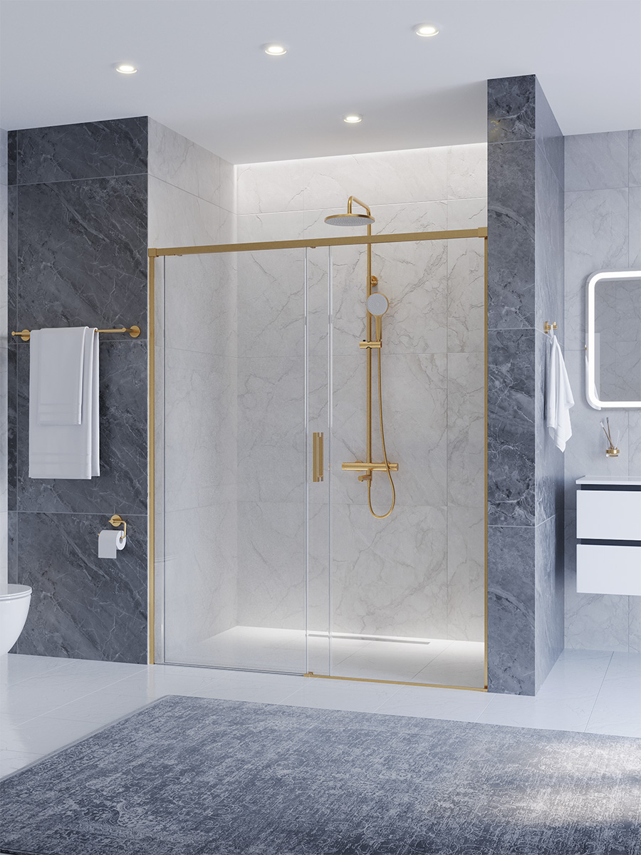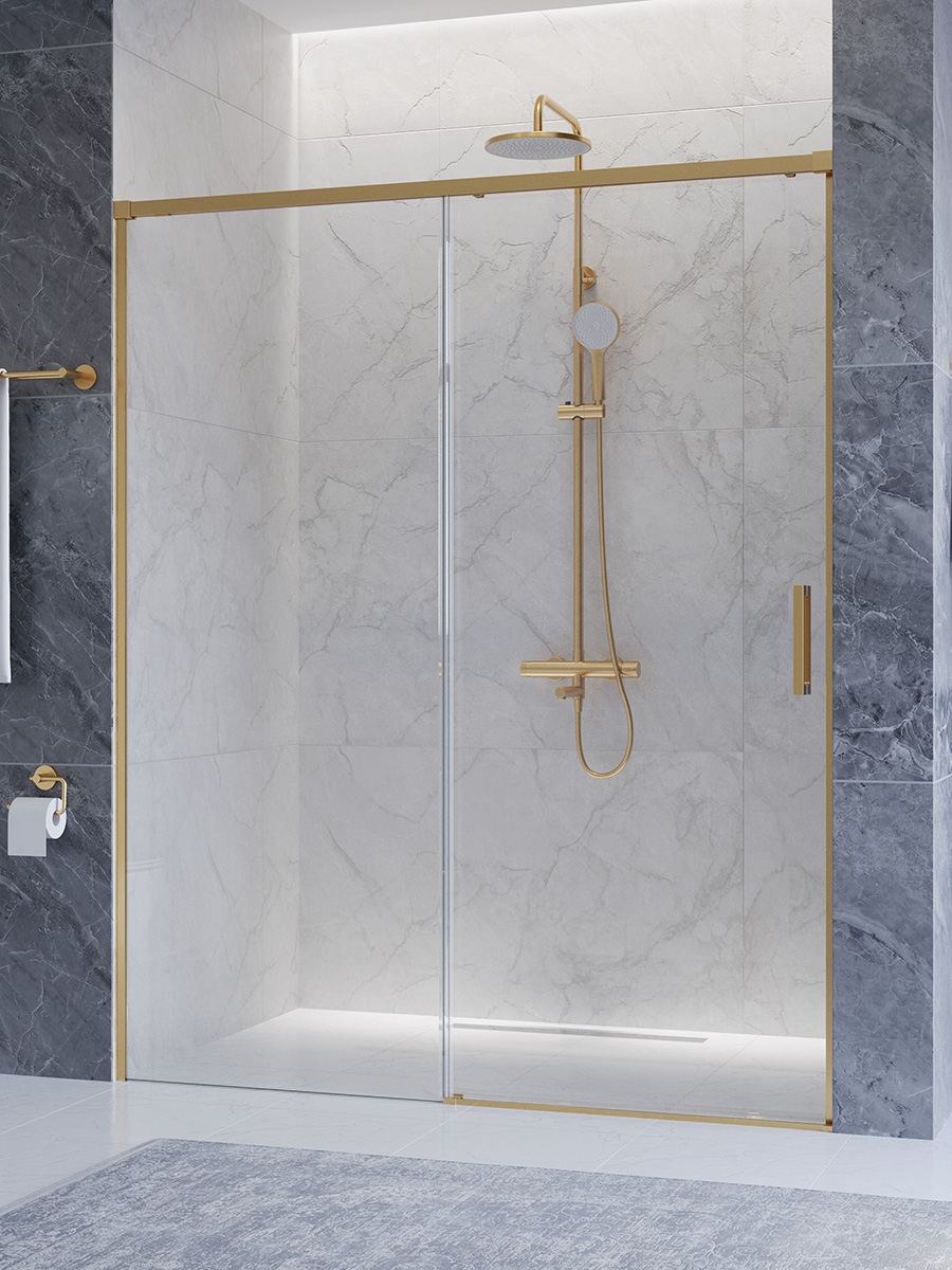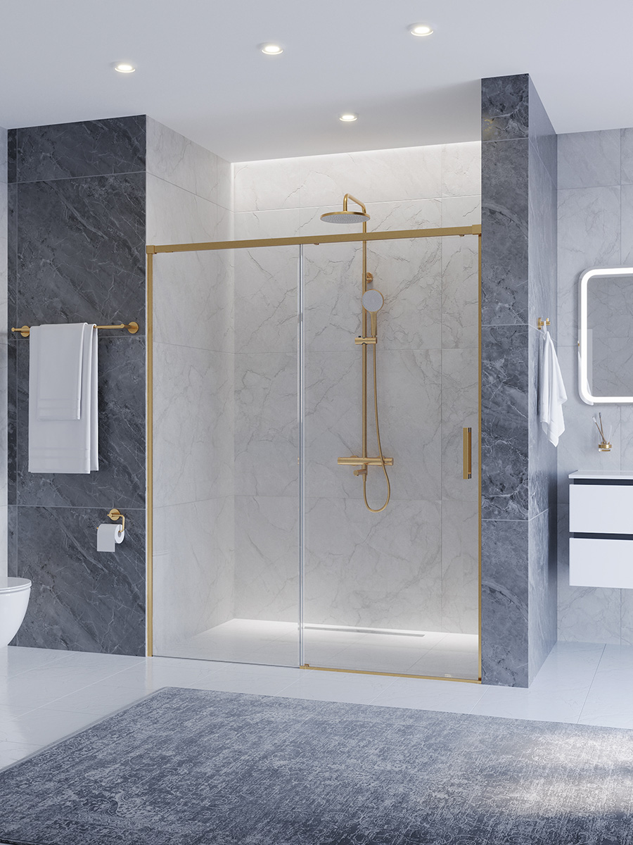 Душевая дверь Cezares 150 см PLANE-BF-1-150-C-BORO, брашированное золото/прозрачное