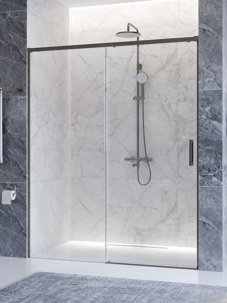 Душевая дверь Cezares 160 см PLANE-BF-1-160-C-GM, оружейная сталь/прозрачное