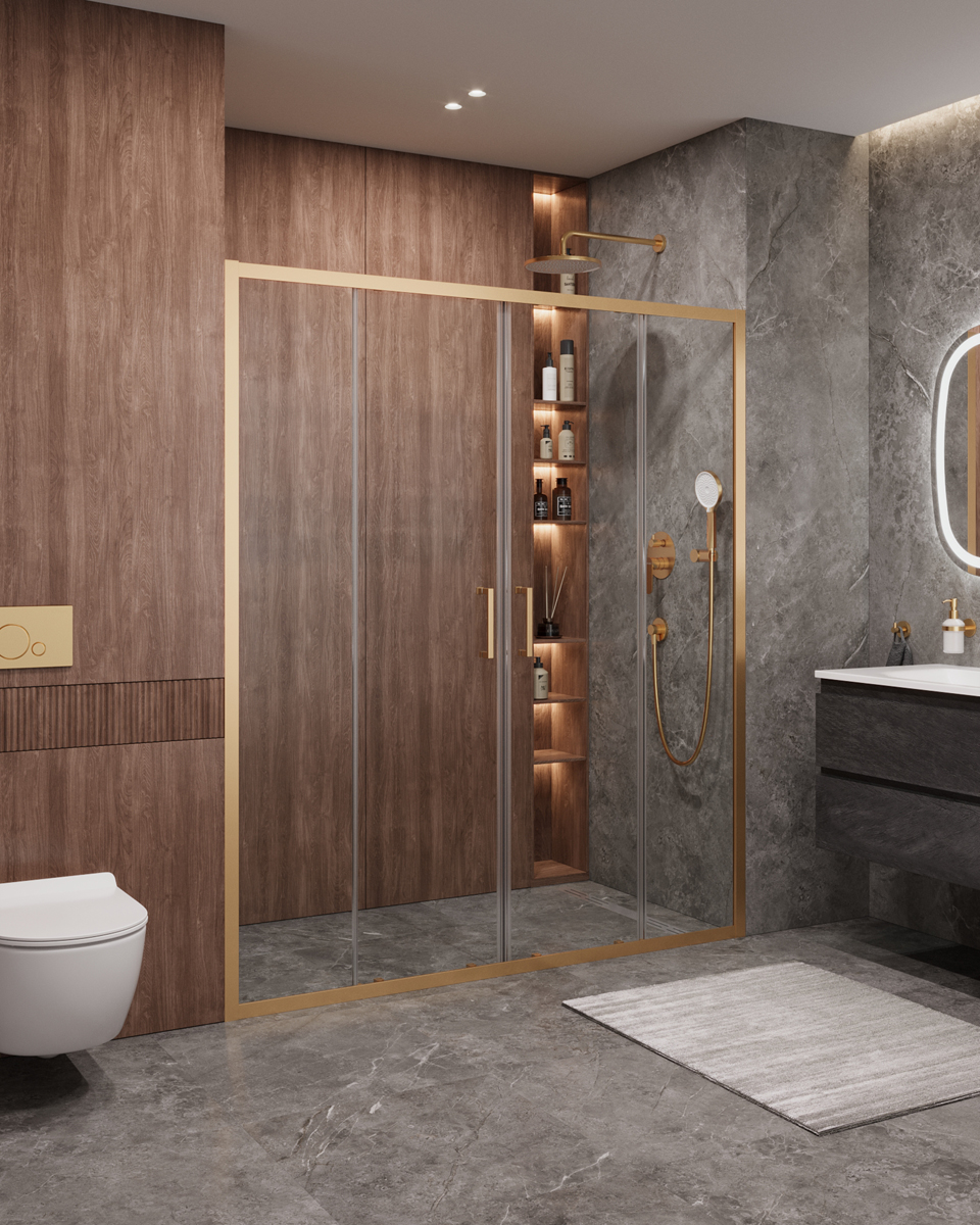 Душевая дверь Cezares 170 см MOLVENO-BF-2-170-C-BORO-IV, брашированное золото/прозрачное
