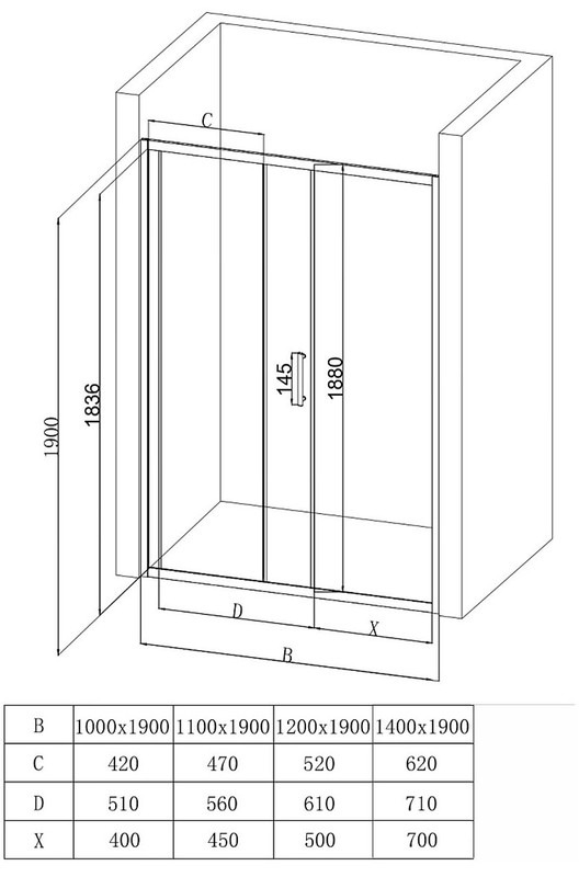 Душевая дверь EvaGold EG220018 1200х1900 мм, цвет стекла - прозрачное, профиль хром, стекло 5 мм, ширина входа 500 мм, поддон приобретается отдельно.