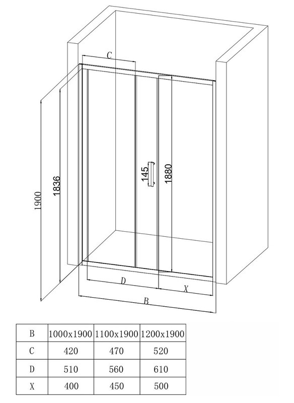 Душевая дверь EvaGold 120 см EG220055, чёрный/тонированное