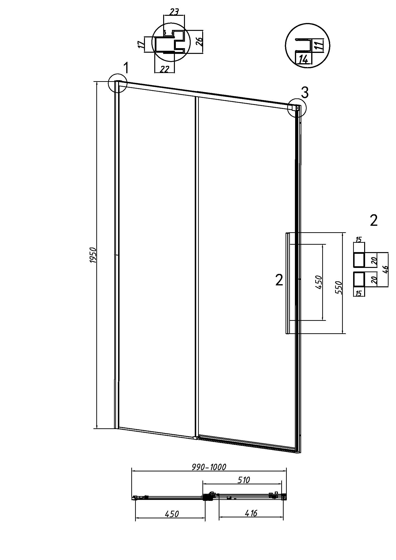 Душевая дверь Grossman Galaxy 100.K33.01.100.21.00, размер 1000х1950 мм, профиль чёрный, стекло прозрачное, 6 мм. Габариты регулировки 990-1000х1950 мм. Ширина входа 416 мм.