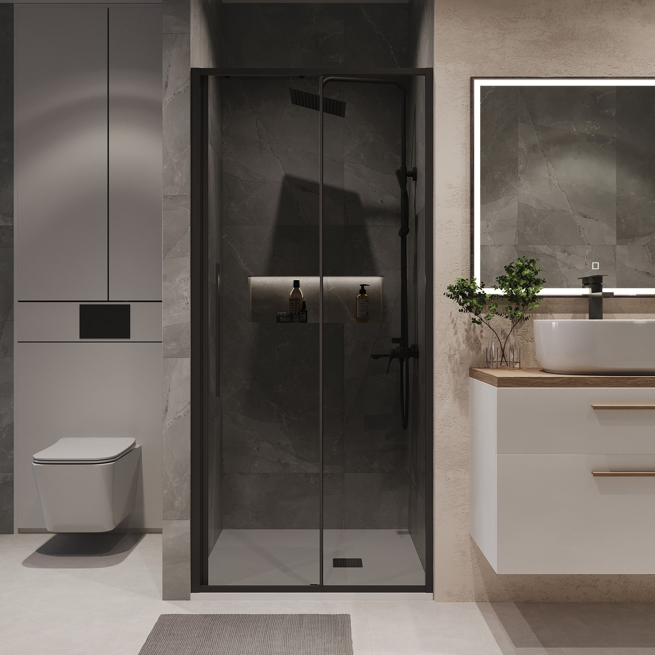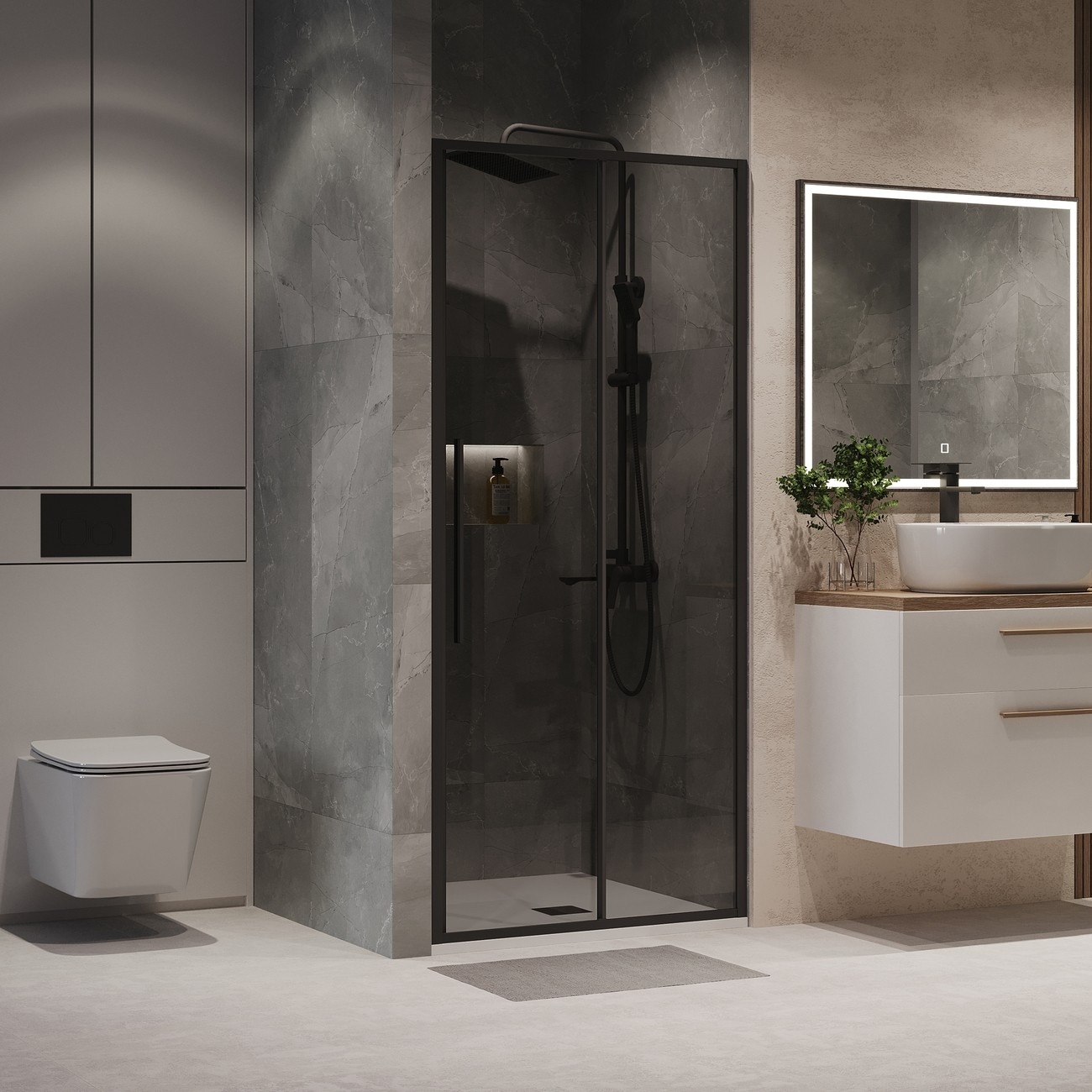 Душевая дверь Niagara Nova NG-85-10TB 1000х1950 мм, профиль – чёрный матовый, стекло – тонированное, 6 мм, ширина входа 405 мм. Габариты регулировки (985-1015)x1950 мм. Душевой поддон приобретается отдельно.