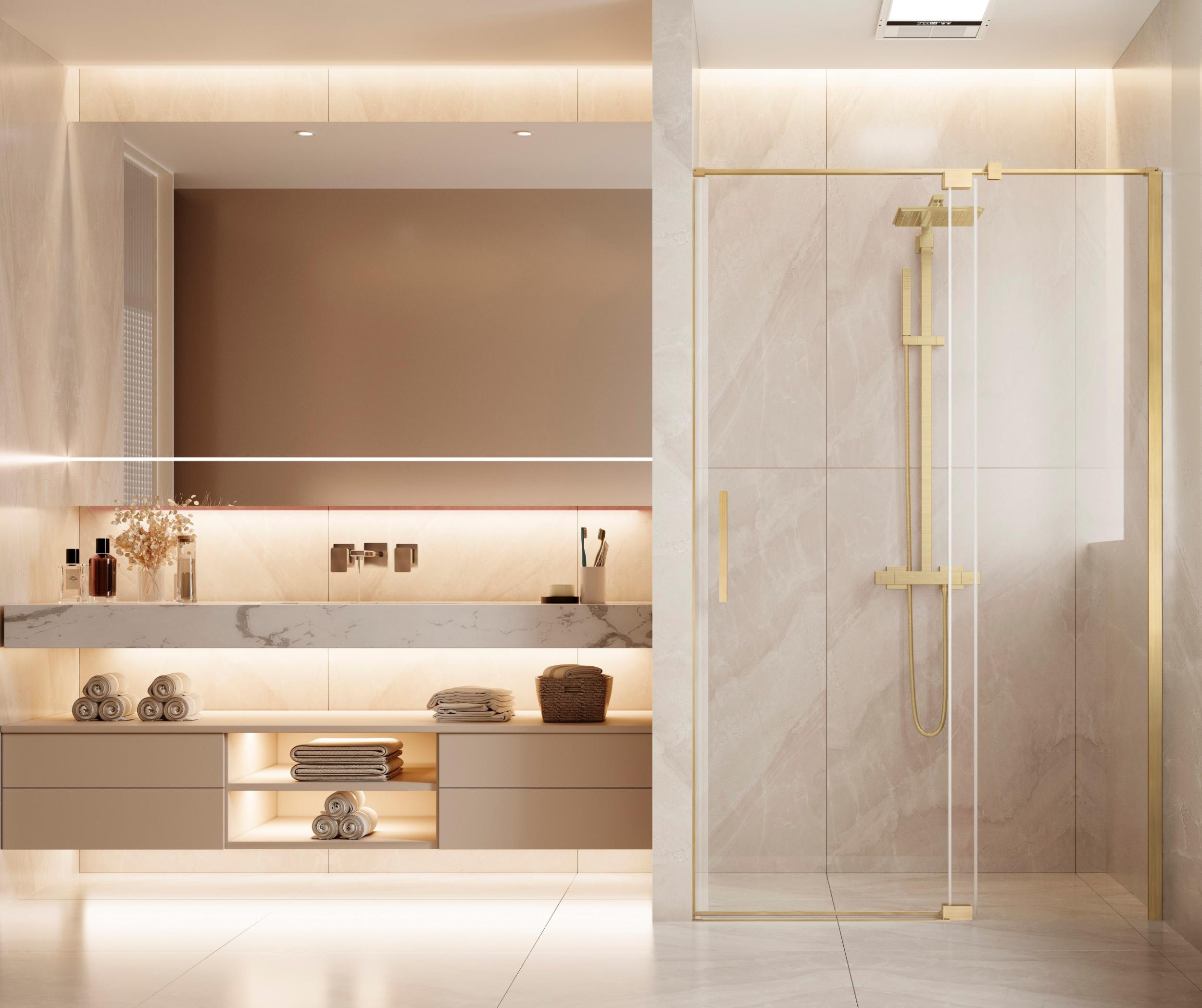 Душевая дверь Vincea Extenza 100-110 см VDP-4EX1011CLG (стекло 8 мм) брашированное золото/прозрачное