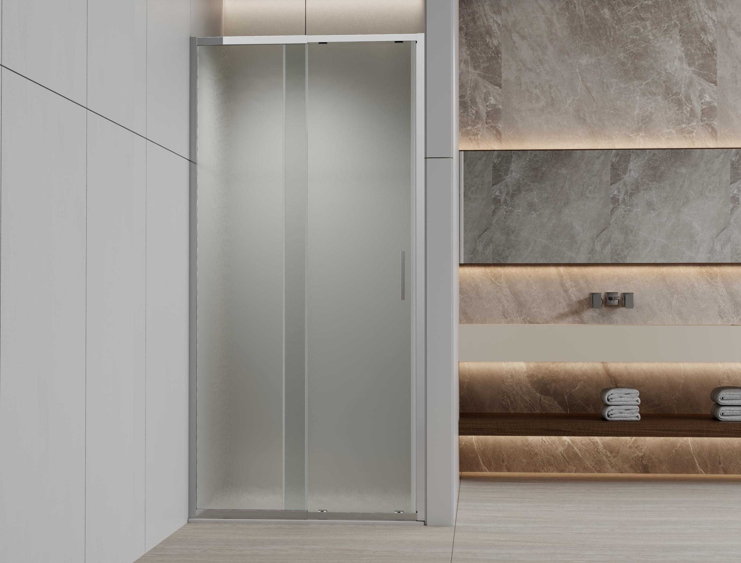 Душевая дверь Vincea Rapid-N VDS-3RN11/12MT 1100-1200х2000 мм, стекло - текстурное 6 мм, профиль - хром, ширина входа - 410-520 мм, габариты с диапазоном регулировок: 1080-1210 мм, расширенная регулировка 120мм за счет специальной конструкции телескопического профиля. Поддон приобретается отдельно.