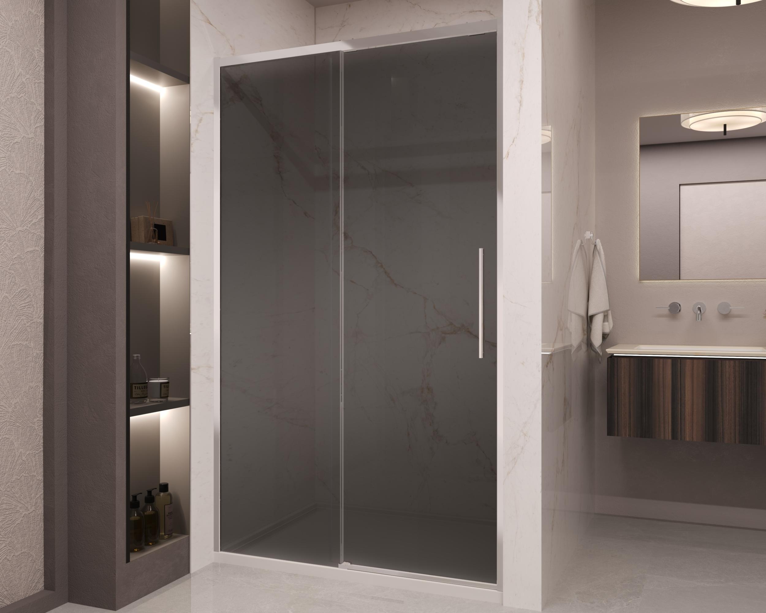 Душевая дверь Vincea Stella VDS-1ST120CG 1200х2000 мм, стекло - тонированное 8 мм с покрытием Easy Clean, профиль - хром, ширина входа - 470-480 мм, габариты с диапазоном регулировок: 1180-1200 мм, доводчики закрывания двери, ручка 430мм. Поддон приобретается отдельно.