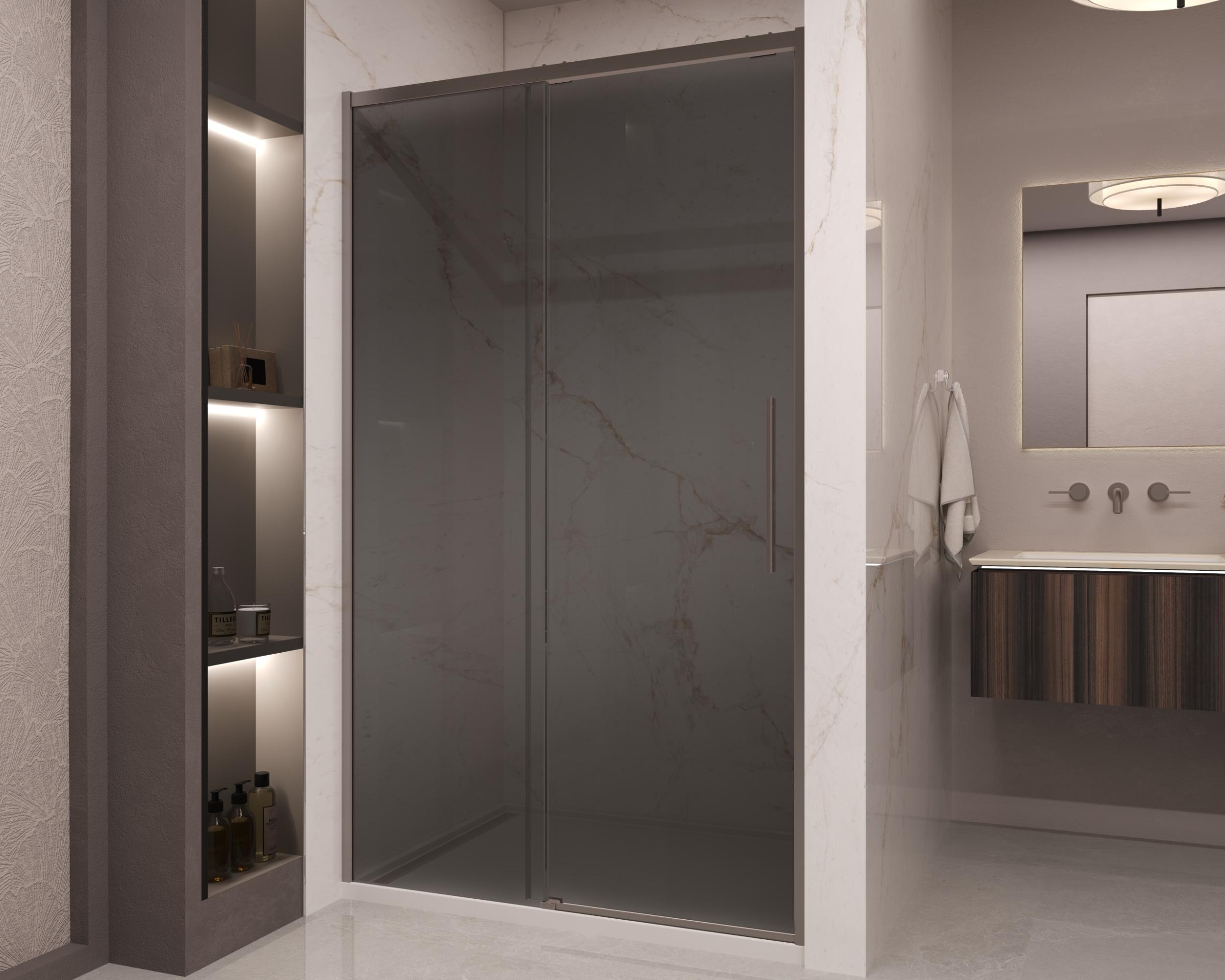 Душевая дверь Vincea Stella VDS-1ST120CGGM 1200х2000 мм, стекло - тонированное 8 мм с покрытием Easy Clean, профиль - вороненая сталь, ширина входа - 470-480 мм, габариты с диапазоном регулировок: 1180-1200 мм, доводчики закрывания двери, ручка 430мм. Поддон приобретается отдельно.