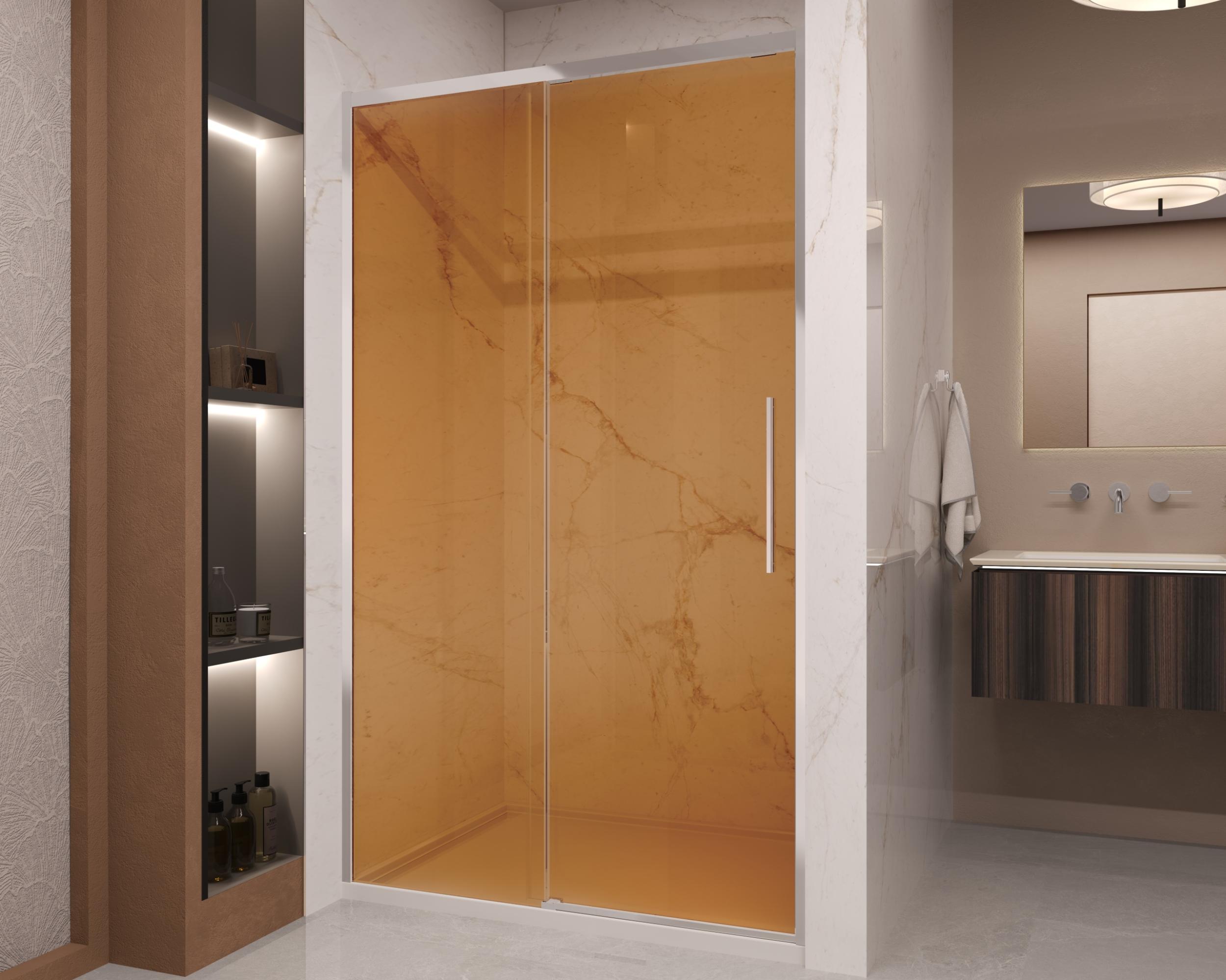 Душевая дверь Vincea Stella VDS-1ST120GS 1200х2000 мм, стекло - янтарь 8 мм с покрытием Easy Clean, профиль - хром, ширина входа - 470-480 мм, габариты с диапазоном регулировок: 1180-1200 мм. Поддон приобретается отдельно.