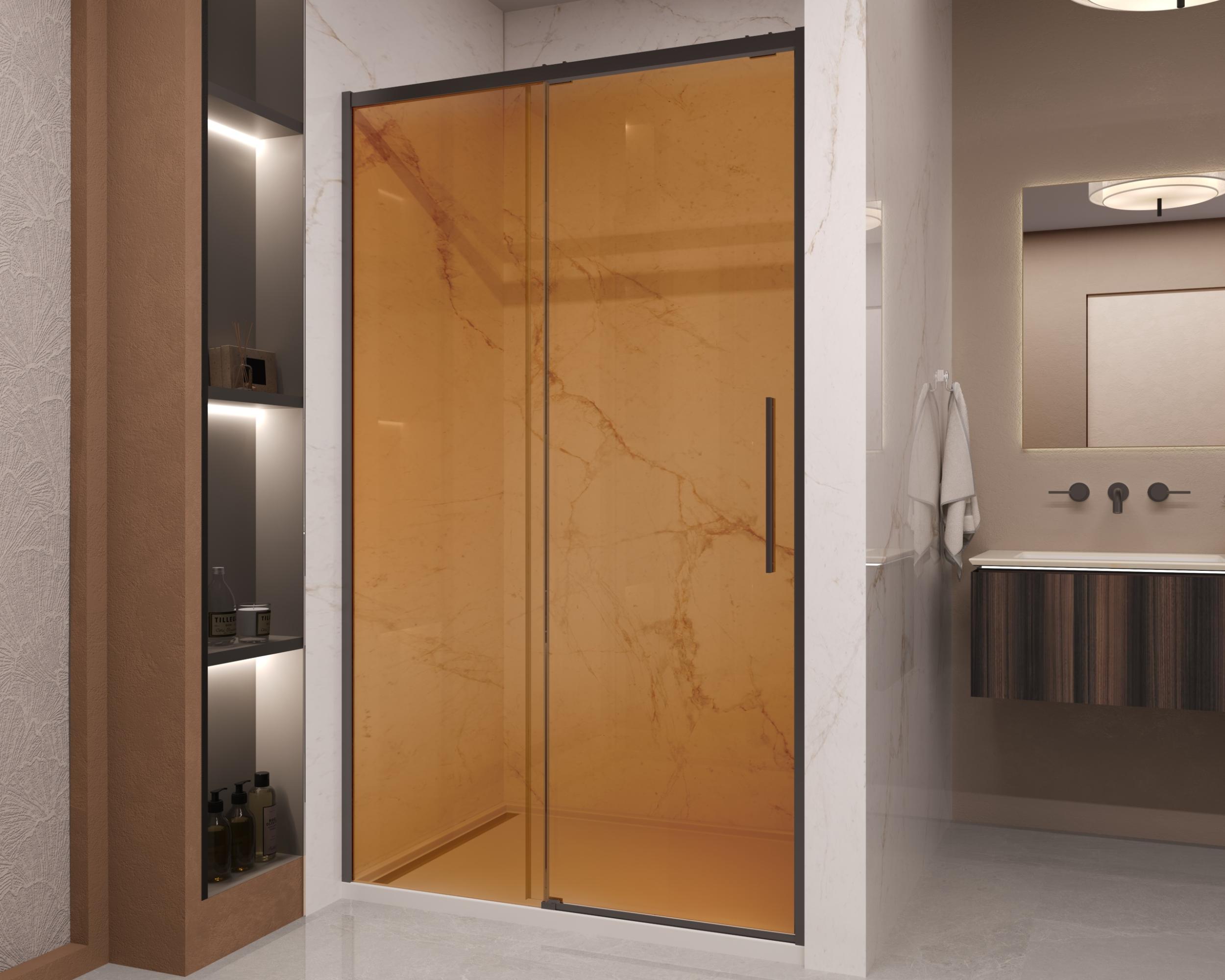 Душевая дверь Vincea Stella VDS-1ST120GSB 1200х2000 мм, стекло - янтарь 8 мм с покрытием Easy Clean, профиль - чёрный, ширина входа - 470-480 мм, габариты с диапазоном регулировок: 1180-1200 мм. Поддон приобретается отдельно.
