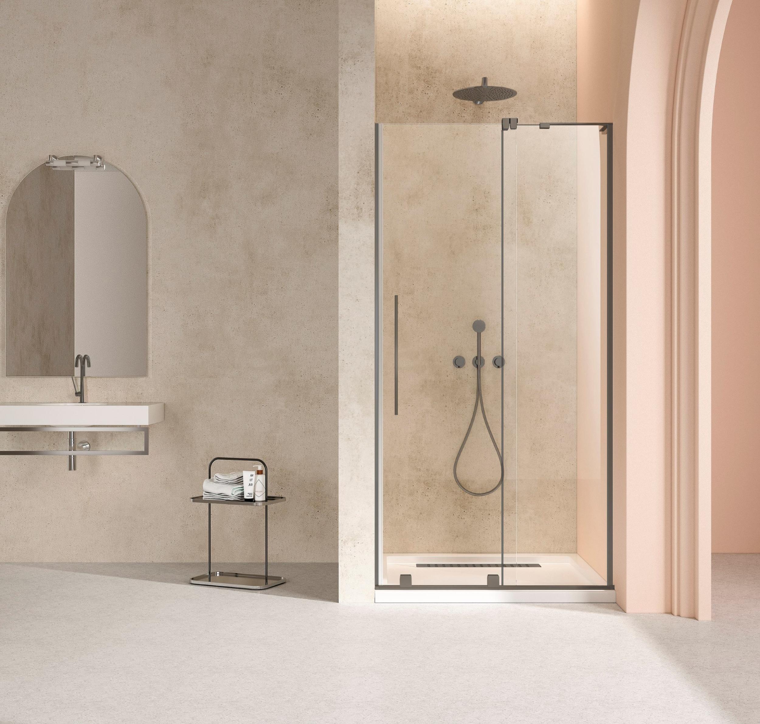 Душевая дверь Vincea Walk-In VDS-4WSL120CLGM-R, размер 1200х2000 мм, стекло - прозрачное 8 мм с покрытием Easy Clean, профиль - вороненая сталь, ширина входа - 513 мм, габариты с диапазоном регулировок: 1195-1210 мм, двусторонняя ручка 300мм. Поддон приобретается отдельно.