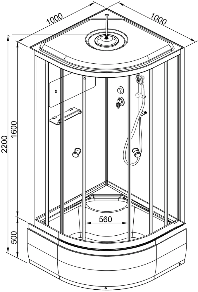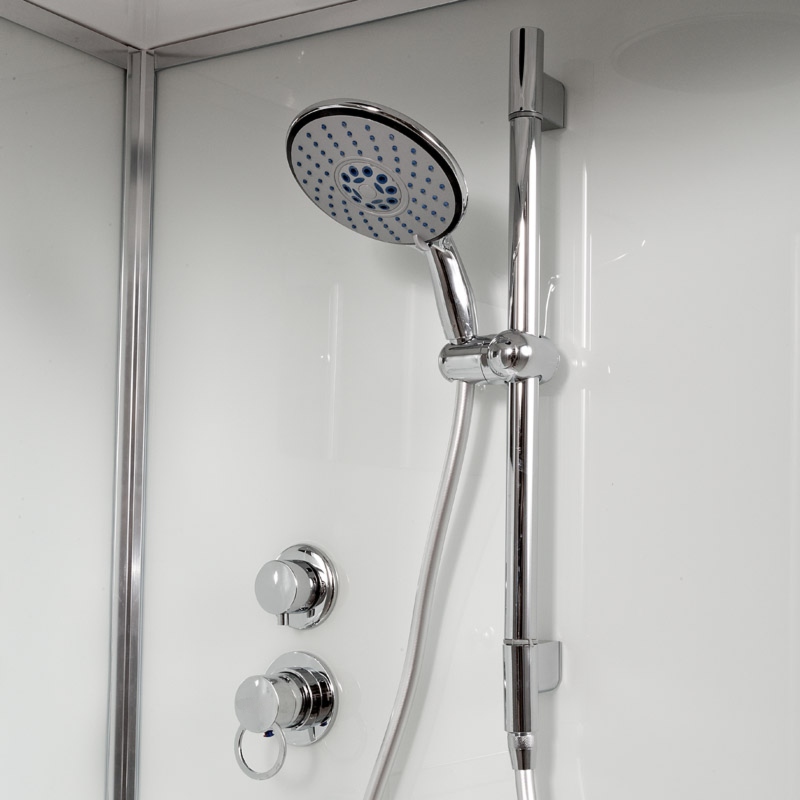 Стильная душевая кабина AvaCan D10S сочетает в себе высокую функциональность, практичность и надежность. Для изготовления применяют безопасное закаленное стекло толщиной 4 мм, надежно фиксируемое алюминиевым профилем. Цвет профиля хром. В комплекте встроенное сидение, сифон, крючок, полочка, зеркало, смеситель, переключатель режимов, передний съемный экран, донный клапан (клик-клак), душевой гарнитур, тропический (верхний) душ.