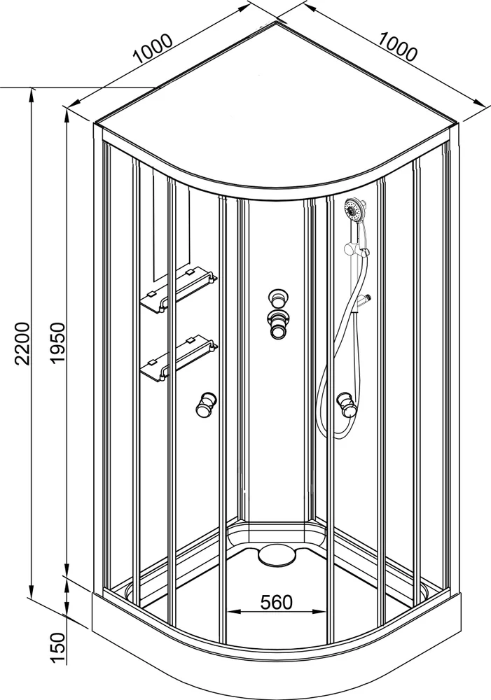 - Размеры (ш/г/в): 100х100х208