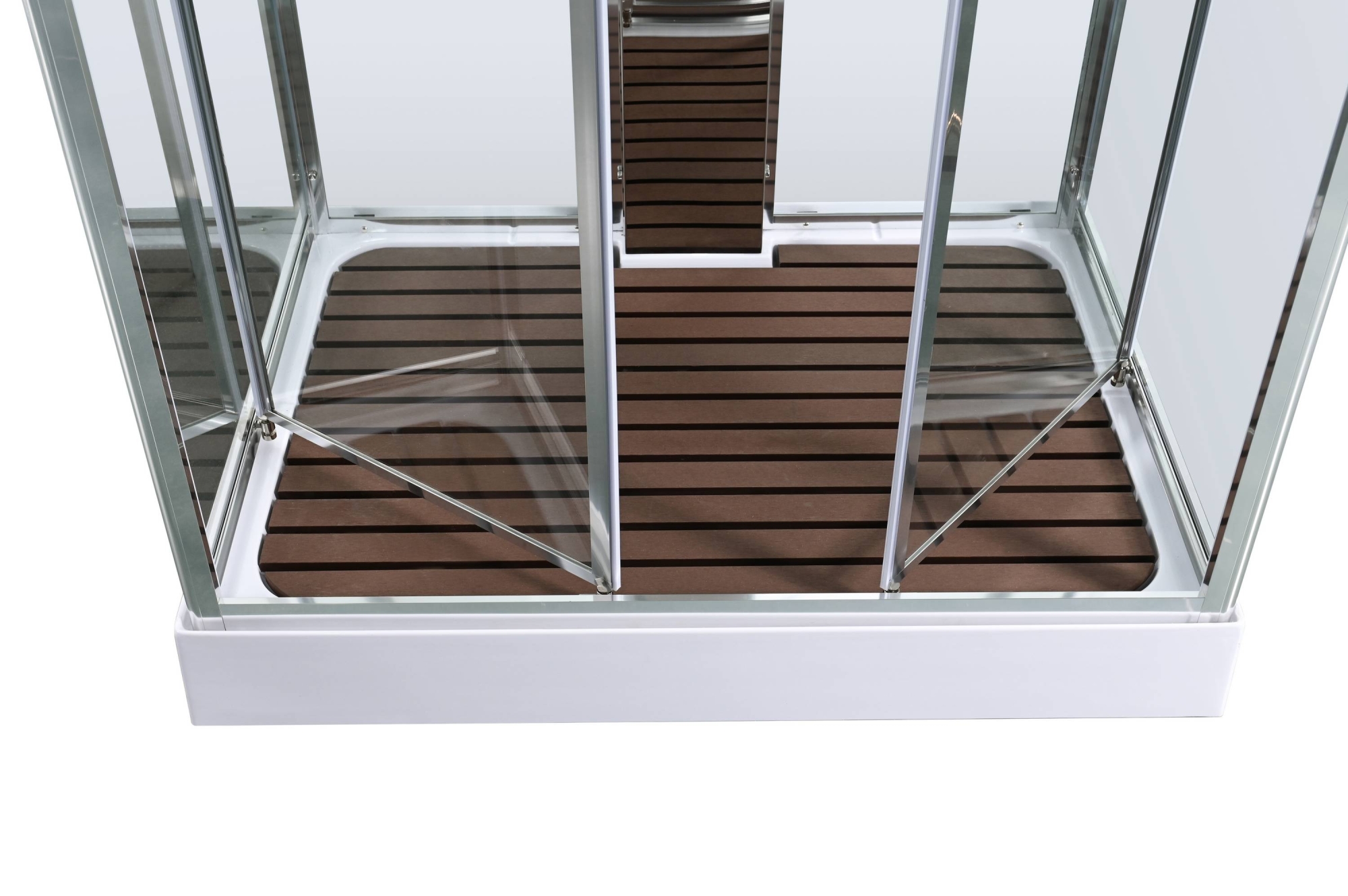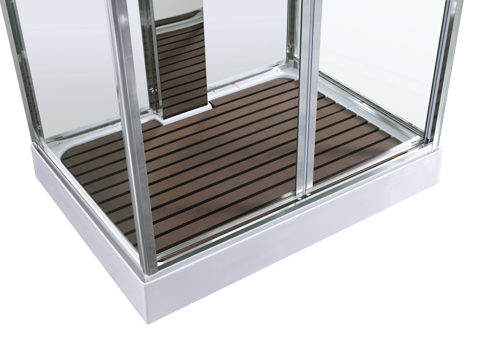 Стильная душевая кабина AvaCan сочетает в себе высокую функциональность, практичность и надежность. При изготовлении применяется безопасное закаленное стекло, надежно фиксируемое алюминиевым профилем. Профиль сделан из алюминия повышенной прочности. Сборка без силикона (увеличивает срок службы, защищает от протечек), внутренняя сборка (облегчает установку и ревизию; позволяет установить в ограниченном пространстве и обойтись без демонтажа других сантехнических приборов), смеситель резьбовой (без хомутов). Съемный экран поддона (позволяет осуществлять подключение и ревизию сифона).Двойные металлические ролики дверей (распределение нагрузки на два ролика, увеличивают срок службы). Душевая штанга(позволяет регулировать по высоте ручную лейку), ручная арома-лейка с витамином С (картридж в комплекте,есть возможность замены или удаления картриджа), полочки(из стекла, с ограничителем), сифон с гидрозатвором.