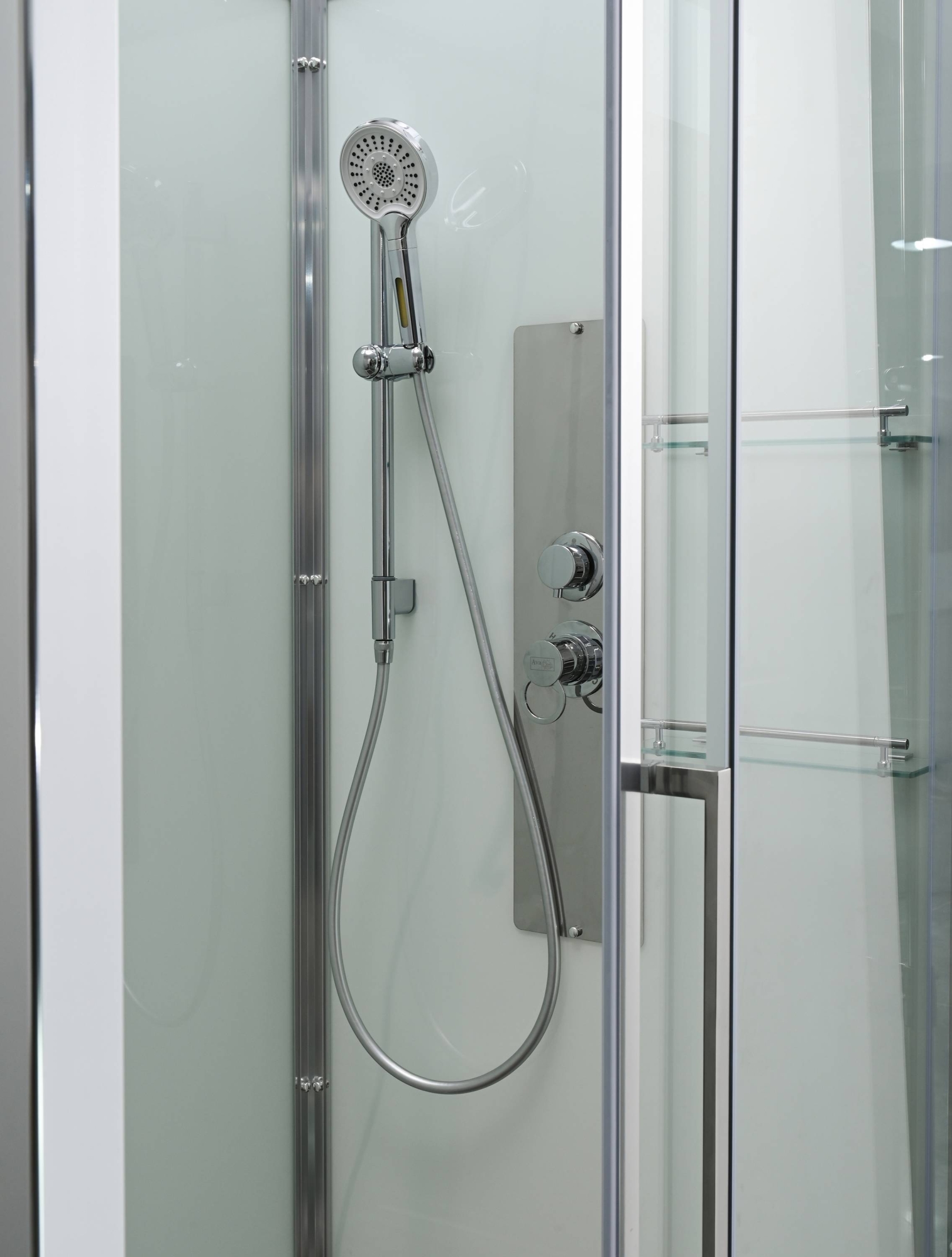 Стильная душевая кабина AvaCan сочетает в себе высокую функциональность, практичность и надежность. При изготовлении применяется безопасное закаленное стекло, надежно фиксируемое алюминиевым профилем. Профиль сделан из алюминия повышенной прочности. Сборка без силикона (увеличивает срок службы, защищает от протечек), внутренняя сборка (облегчает установку и ревизию; позволяет установить в ограниченном пространстве и обойтись без демонтажа других сантехнических приборов), смеситель резьбовой (без хомутов).Двойные металлические ролики дверей (распределение нагрузки на два ролика, увеличивают срок службы). Душевая штанга(позволяет регулировать по высоте ручную лейку), ручная арома-лейка с витамином С (картридж в комплекте,есть возможность замены или удаления картриджа), полочки(из стекла, с ограничителем), сифон с гидрозатвором.