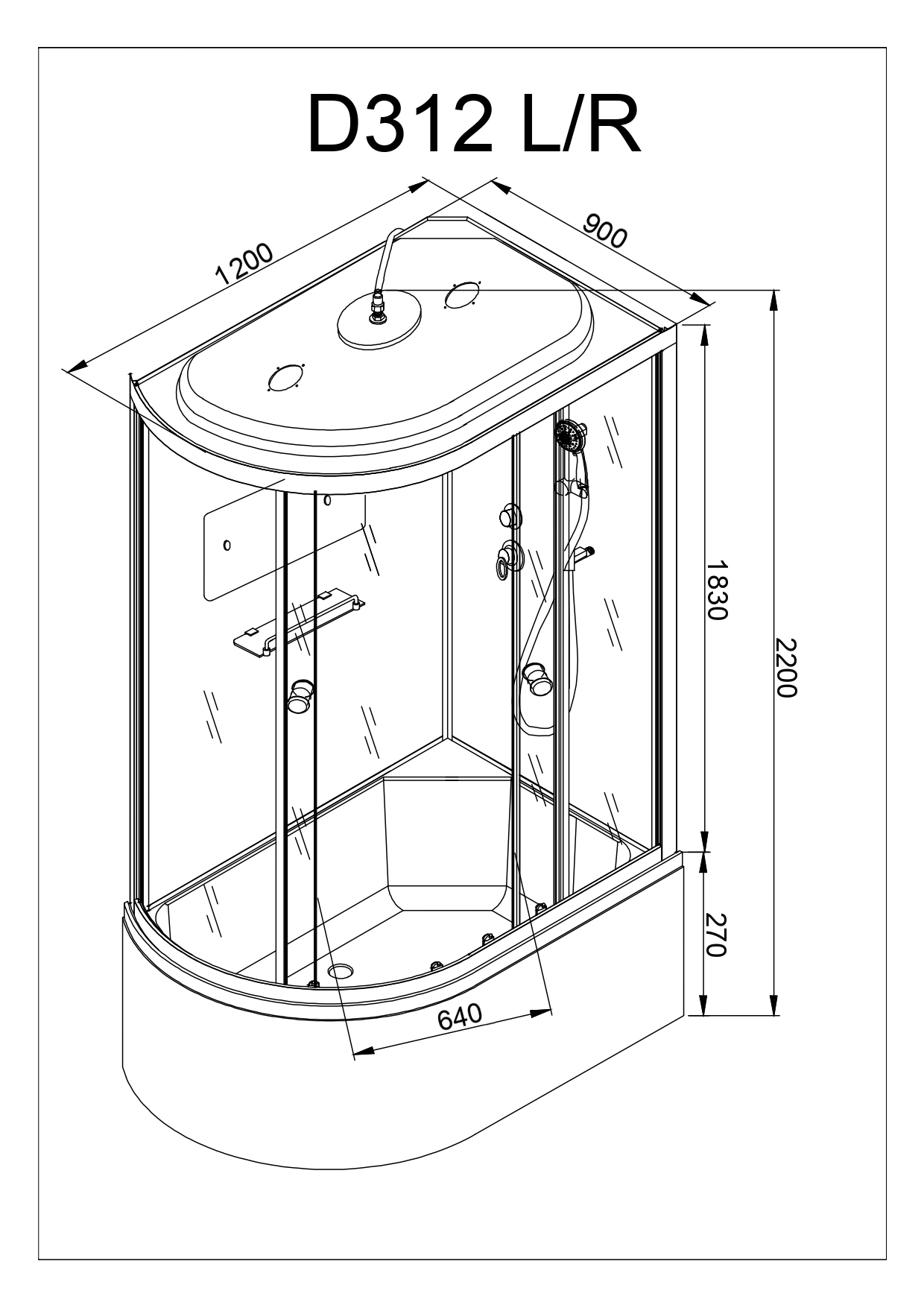 Стильная душевая кабина с внутренней сборкой AvaCan D312 S R сочетает в себе высокую функциональность, практичность и надежность. Для изготовления применяют безопасное закаленное стекло толщиной 4 мм, надежно фиксируемое алюминиевым профилем. Цвет профиля хром. В комплекте сифон, полочка, зеркало, смеситель, переключатель режимов, передний съемный экран, душевой гарнитур, тропический (верхний) душ, вентиляция,