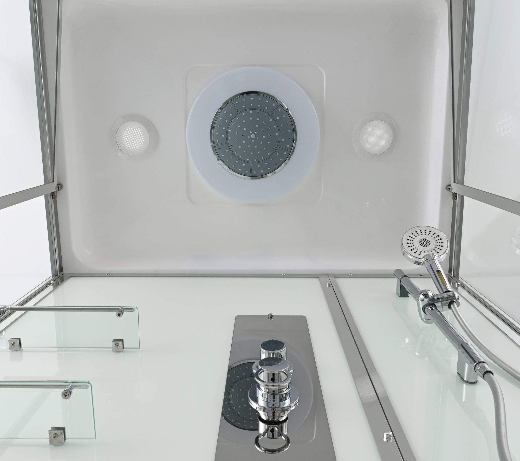 Стильная душевая кабина AvaCan сочетает в себе высокую функциональность, практичность и надежность. При изготовлении применяется безопасное закаленное стекло, надежно фиксируемое алюминиевым профилем. Профиль сделан из алюминия повышенной прочности. Сборка без силикона (увеличивает срок службы, защищает от протечек), внутренняя сборка (облегчает установку и ревизию; позволяет установить в ограниченном пространстве и обойтись без демонтажа других сантехнических приборов), смеситель резьбовой (без хомутов).Двойные металлические ролики дверей (распределение нагрузки на два ролика, увеличивают срок службы). Душевая штанга(позволяет регулировать по высоте ручную лейку), ручная арома-лейка с витамином С (картридж в комплекте,есть возможность замены или удаления картриджа), полочки(из стекла, с ограничителем), сифон с гидрозатвором.