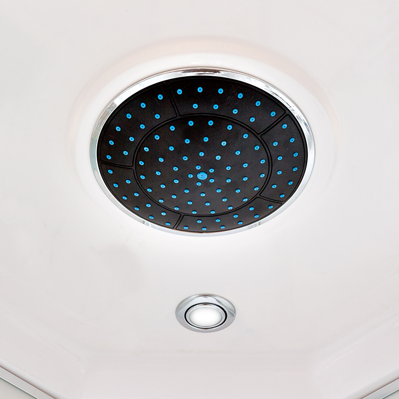 Стильная душевая кабина AvaCan EM 4580 с электрикой сочетает в себе высокую функциональность, практичность и надежность. Для изготовления применяют безопасное закаленное стекло толщиной 5 мм, надежно фиксируемое алюминиевым профилем. Цвет профиля хром. В комплекте зеркало, сенсорный пульт управления, донный клапан (клик-клак), смеситель, переключатель режимов, вентиляция, полочки, тропический (верхний) душ, радио.