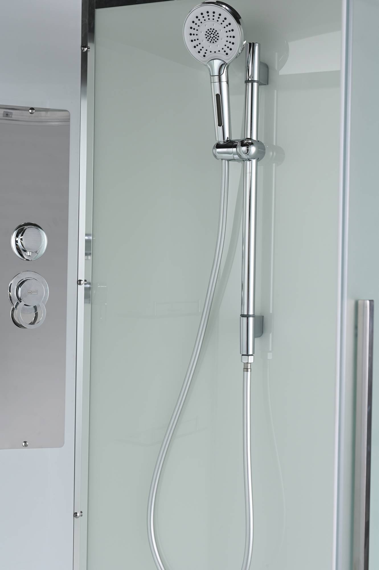 Стильная душевая кабина AvaCan сочетает в себе высокую функциональность, практичность и надежность. При изготовлении применяется безопасное закаленное стекло, надежно фиксируемое алюминиевым профилем. Профиль сделан из алюминия повышенной прочности. Сборка без силикона (увеличивает срок службы, защищает от протечек), внутренняя сборка (облегчает установку и ревизию; позволяет установить в ограниченном пространстве и обойтись без демонтажа других сантехнических приборов), смеситель резьбовой (без хомутов). Съемный экран поддона (позволяет осуществлять подключение и ревизию сифона).Двойные металлические ролики дверей (распределение нагрузки на два ролика, увеличивают срок службы). Душевая штанга(позволяет регулировать по высоте ручную лейку), ручная арома-лейка с витамином С (картридж в комплекте,есть возможность замены или удаления картриджа), полочки(из стекла, с ограничителем), сифон с гидрозатвором.