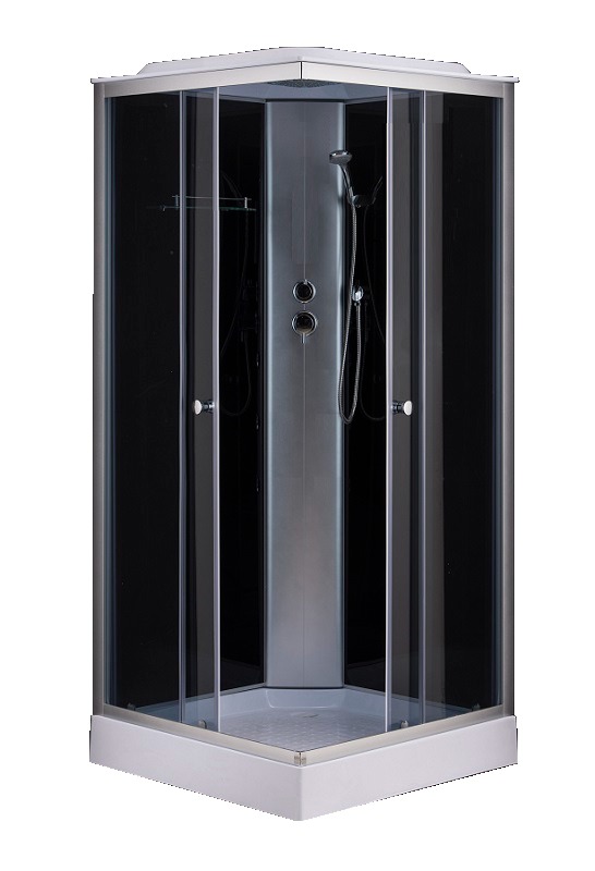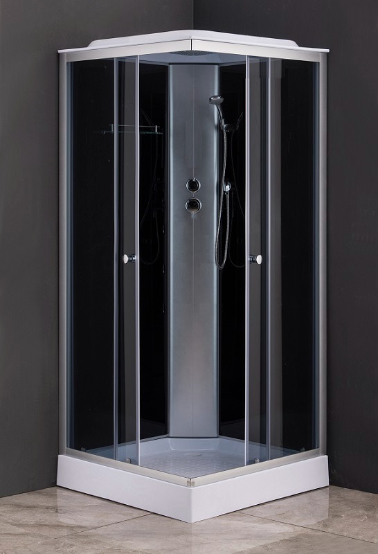 Душевая кабина Loranto CS-6411G,100*100*215 с низким поддоном, размер 1000х1000х2150 мм, профиль сатин, стекло прозрачное 4 мм. Задние стенки стеклянные матовые.