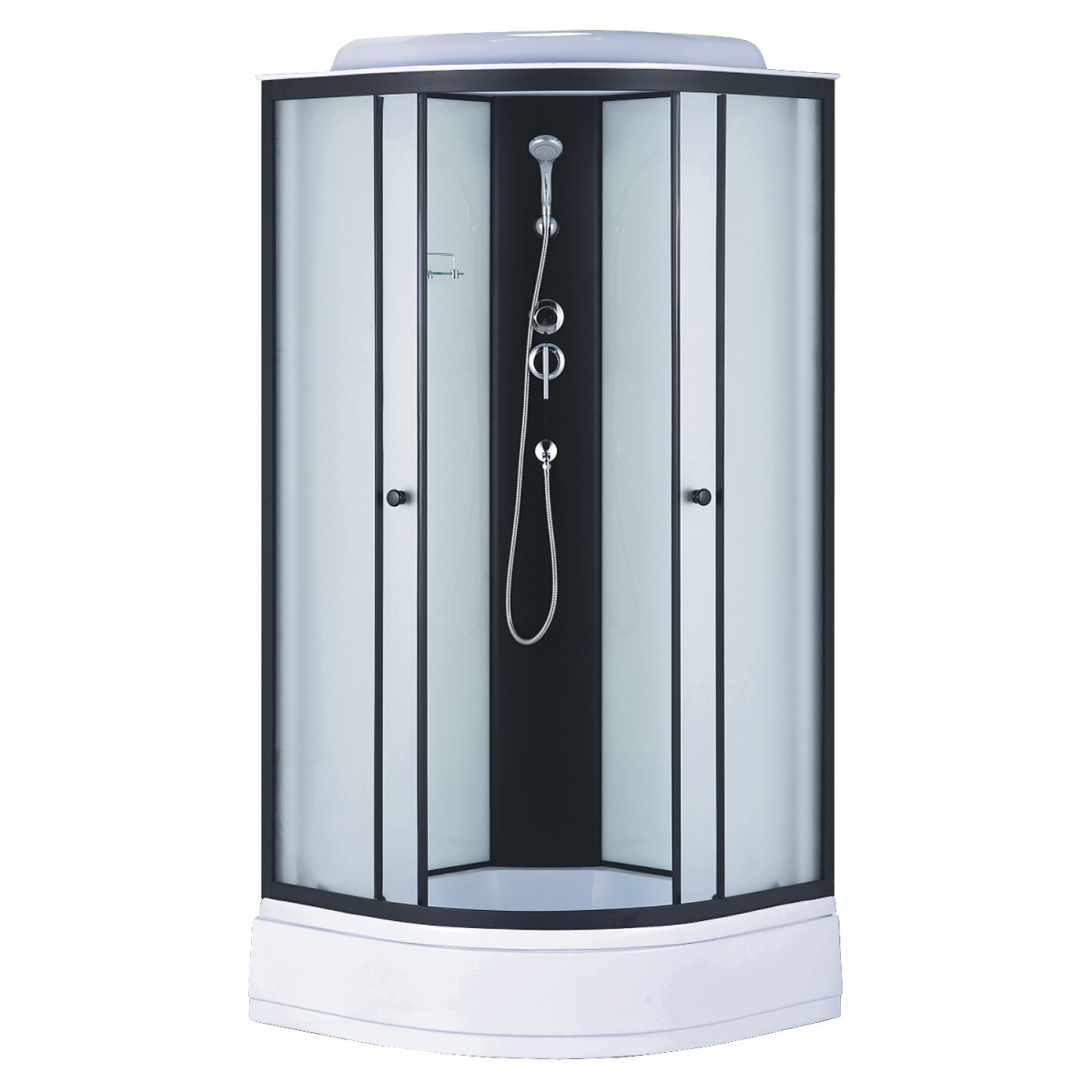 Душевая кабина Loranto CS-881EC26TM/W-100 со средним поддоном и полкой в комплекте, размер 980х980х2150 мм, белая задняя стенка, профиль чёрный, стекло матовое. Ширина входа 580 мм.