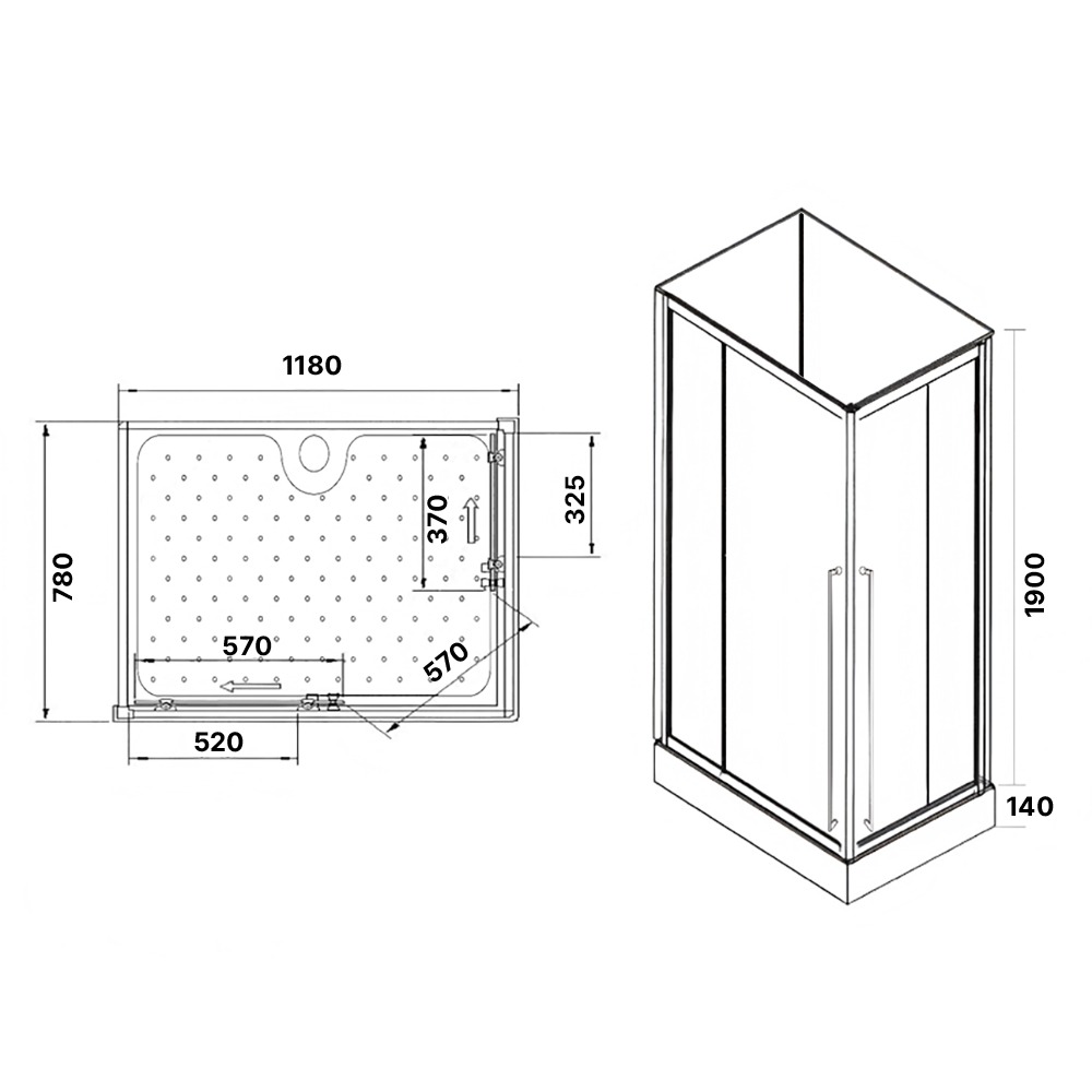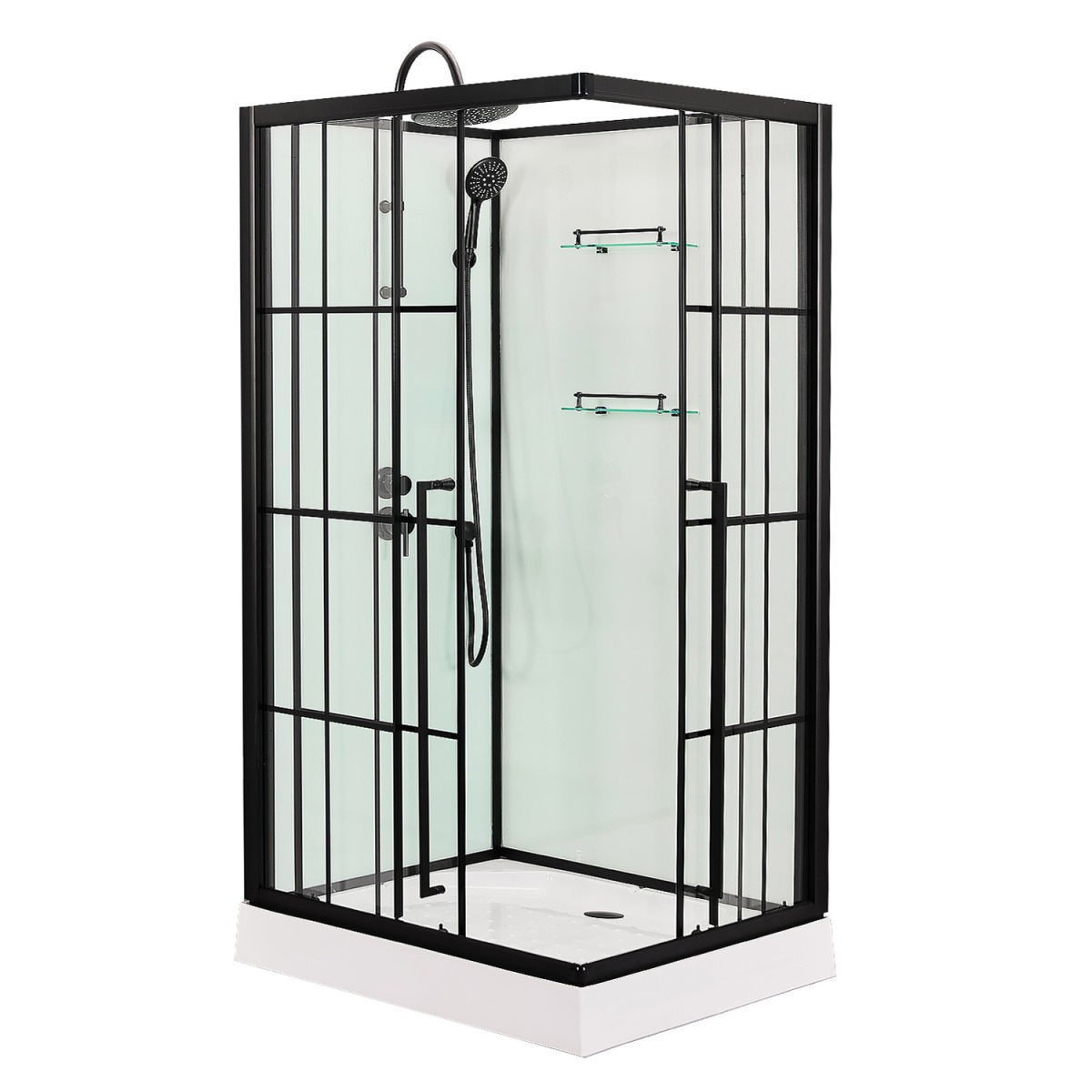 Душевая кабина Loranto CS-3008TMW-120L с низким поддоном, левосторонняя, размер 1180х780х2040 мм, ширина входа 570 мм, профиль чёрный, стекло прозрачное 4 мм. Задние стенки стеклянные белые.