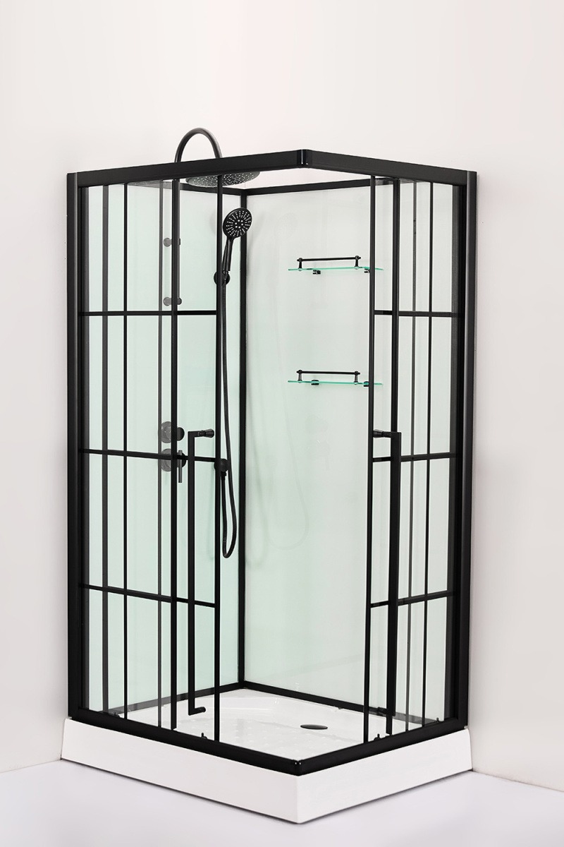 - Задняя стенка выполнена из белого стекла, придающего кабинке элегантный и чистый вид.