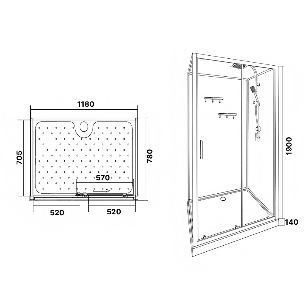 - Задняя стенка изготовлена из белого стекла, придающего кабинке современный и аккуратный вид. Прозрачные двери из закалённого стекла толщиной 4 мм обеспечивают безопасность и долговечность эксплуатации. Надёжный алюминиевый профиль чёрного цвета гармонично дополняет дизайн и гарантирует устойчивость конструкции.