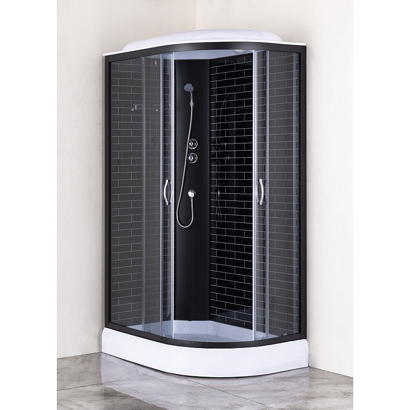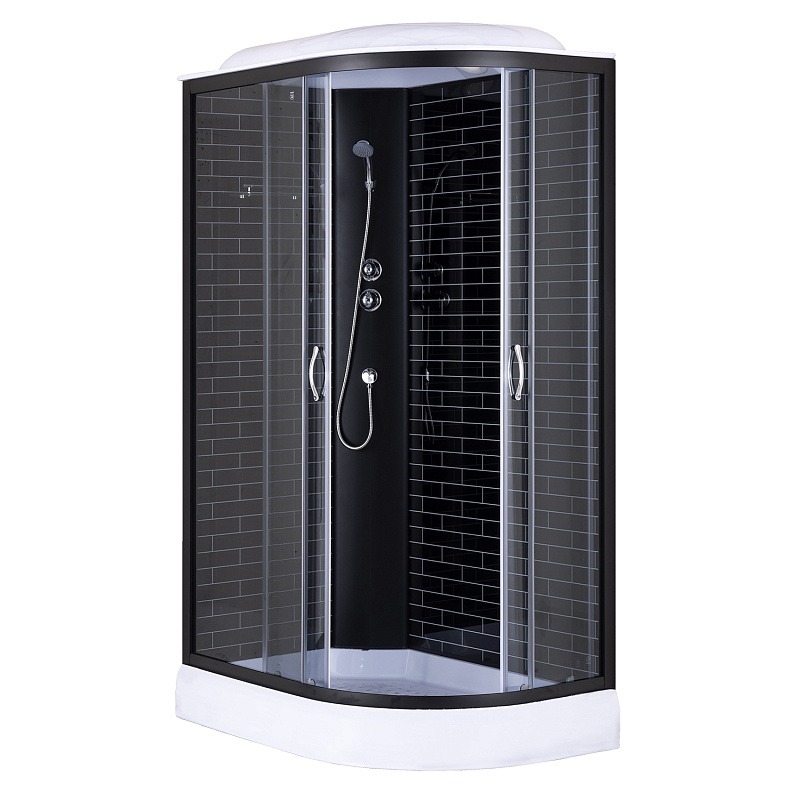 Душевая кабина Loranto CS-66120-13L GB 120 с низким поддоном, размер 1200х800х2150 мм, левосторонняя, чёрный кирпичный узор, профиль чёрный, стекло прозрачное.