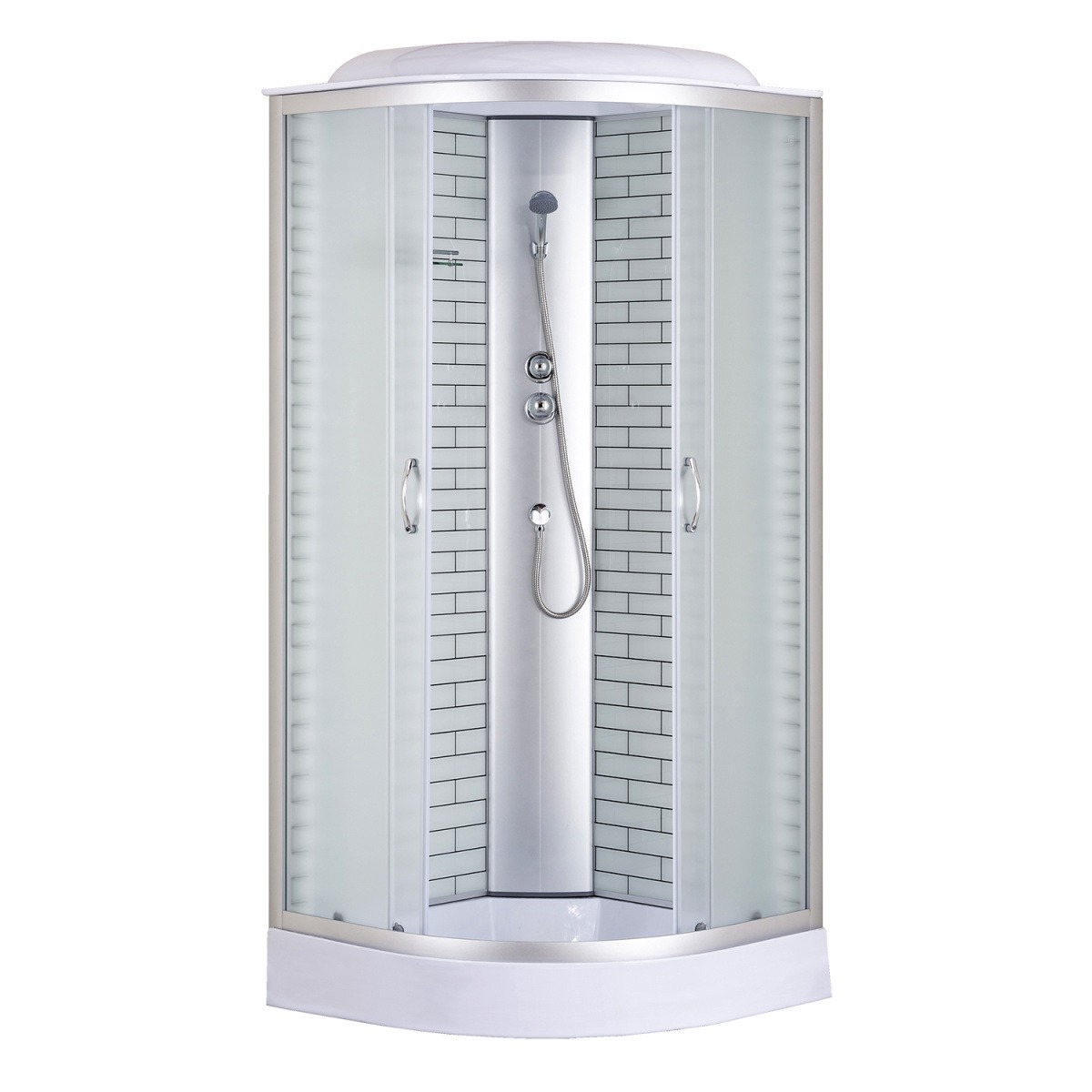 Душевая кабина Loranto CS-6680-13FW 80 с низким поддоном, размер 800х800х2150 мм, профиль хром матовый, стекло матовое 4 мм, заднее стекло белый кирпичный узор.