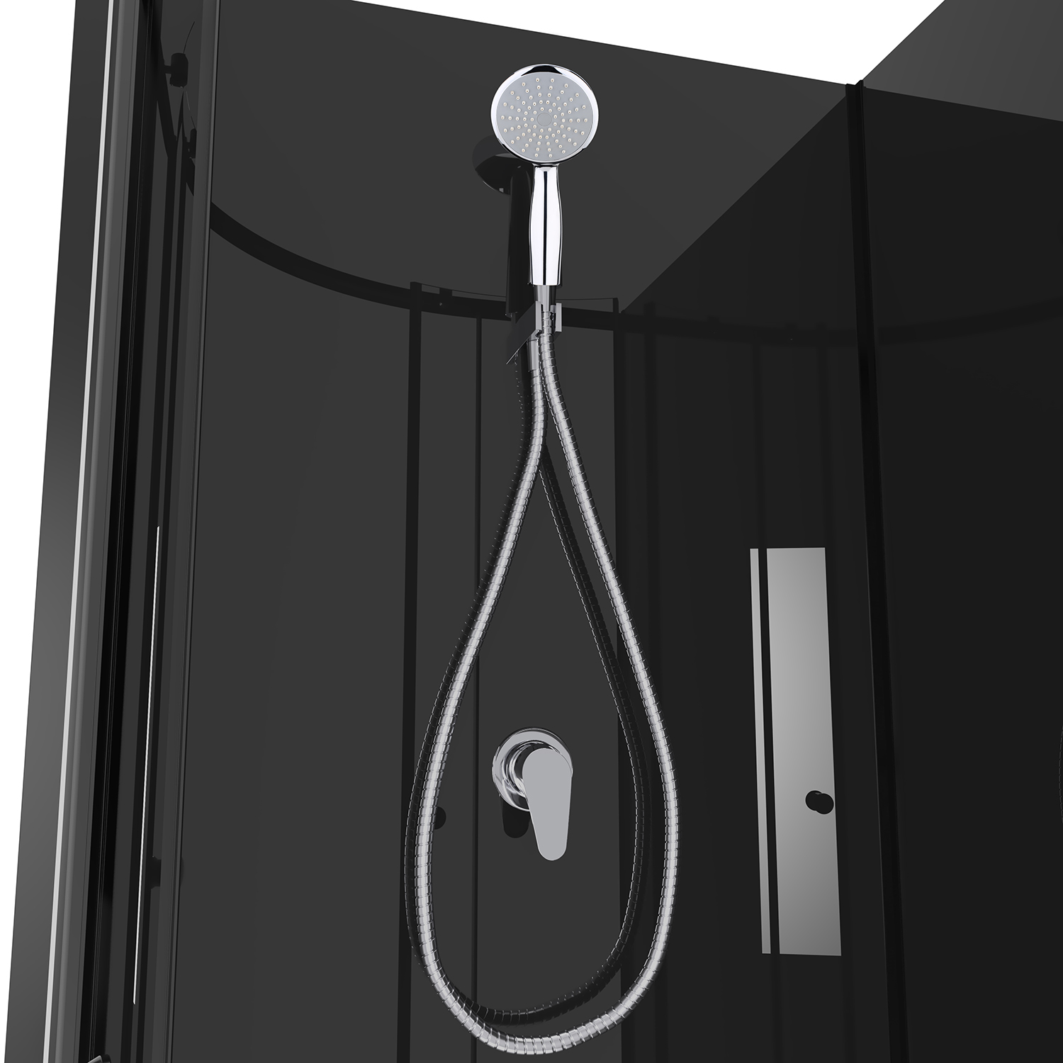 Душевая кабина Loranto Neo CS-21801-BP с низким поддоном, размер 900х900х2040 мм, профиль чёрный, стекло прозрачное 5 мм. Задние стенки стеклянные чёрные.