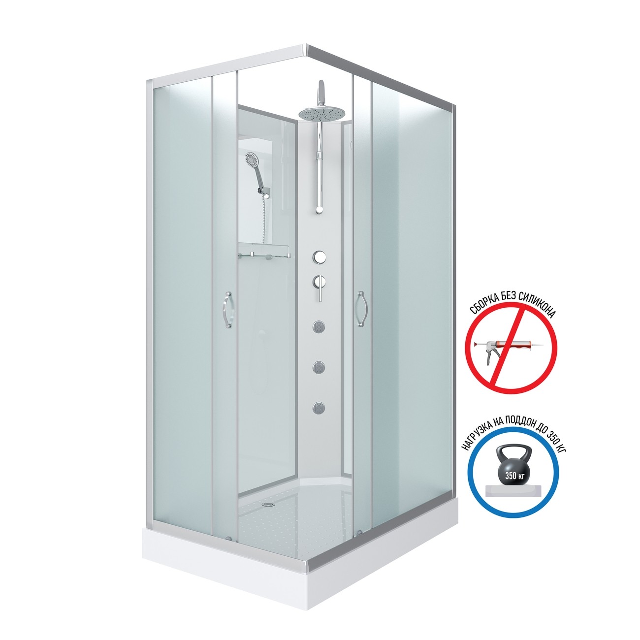- Передние стенки и двери - каленое стекло, белое матовое.