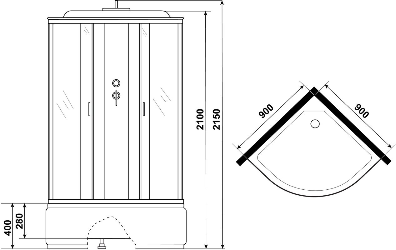 Душевая кабина Niagara Classic NG-2508-14 с высоким поддоном, размер 900x900x2150 мм, цвет задней стенки чёрный. Ширина входа 430 мм. Высокий поддон и сифон в комплекте.