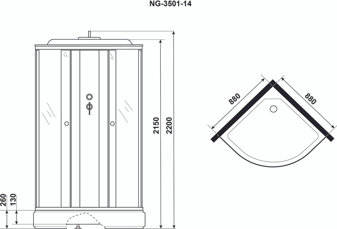 Душевая кабина Niagara Classic NG-3501-14 со средним поддоном, размер 880x880x2200 мм, цвет задней стенки чёрный. Ширина входа 420 мм. Средний поддон и сифон в комплекте.