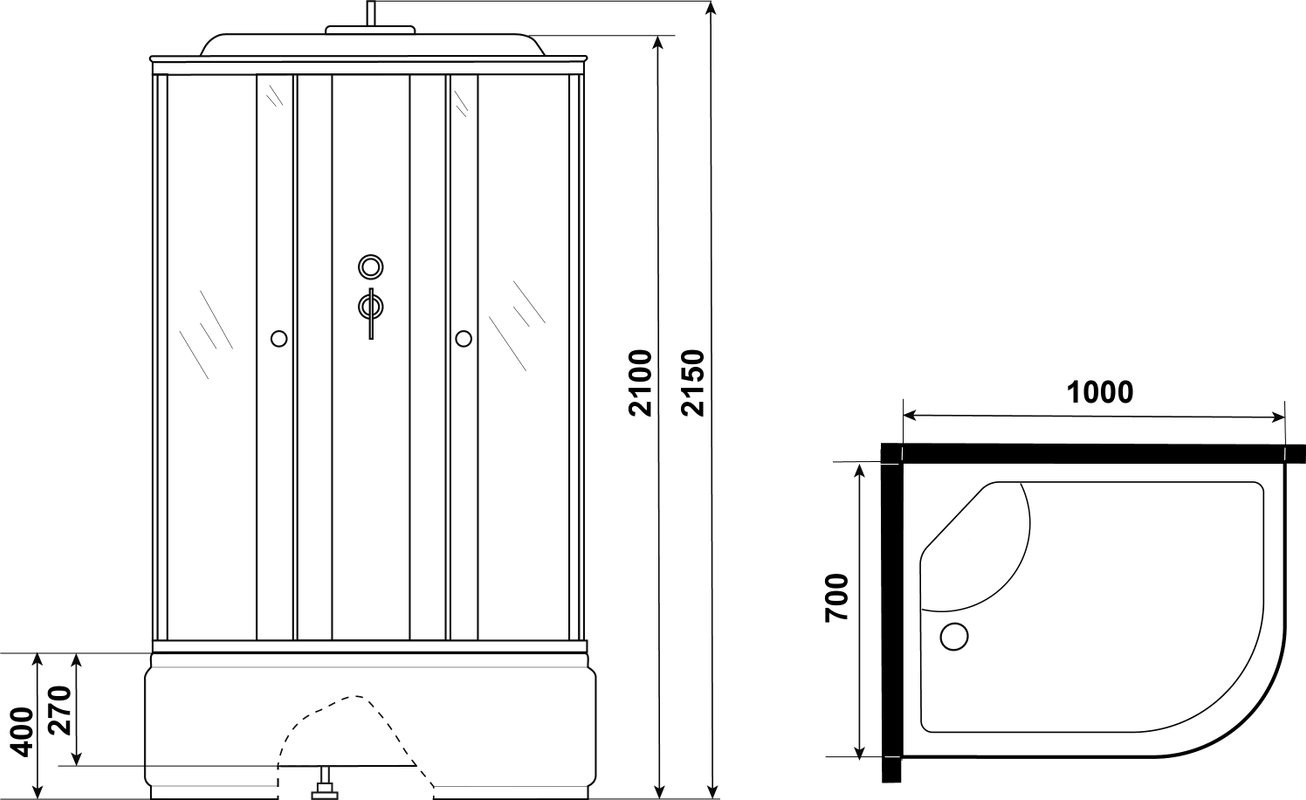 Душевая кабина Niagara Eco E100/70/40L/TN с высоким поддоном, размер 1000x700x2150 мм, левосторонняя, цвет задних стенок чёрный, ширина входа 380 мм. Высокий поддон и сифон в комплекте.